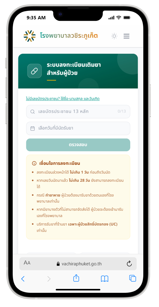 เข้าใช้งานได้ที่ โรงพยาบาลวชิระภูเก็ต Medical Refill
