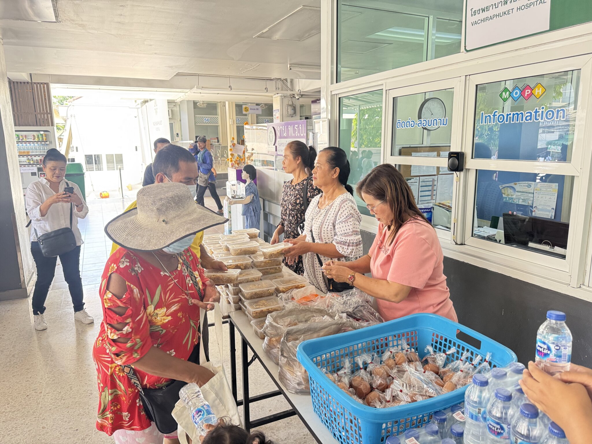 คุณชวนพิศ ตันติวิท และ คุณนรินทร์ จันทร์วิภาวี บริจาคข้าวกล่อง ขนม และน้ำดื่ม จำนวน 100 ชุด ให้แก่ผู้มารับบริการ และเจ้าหน้าที่โรงพยาบาลวชิระภูเก็ต