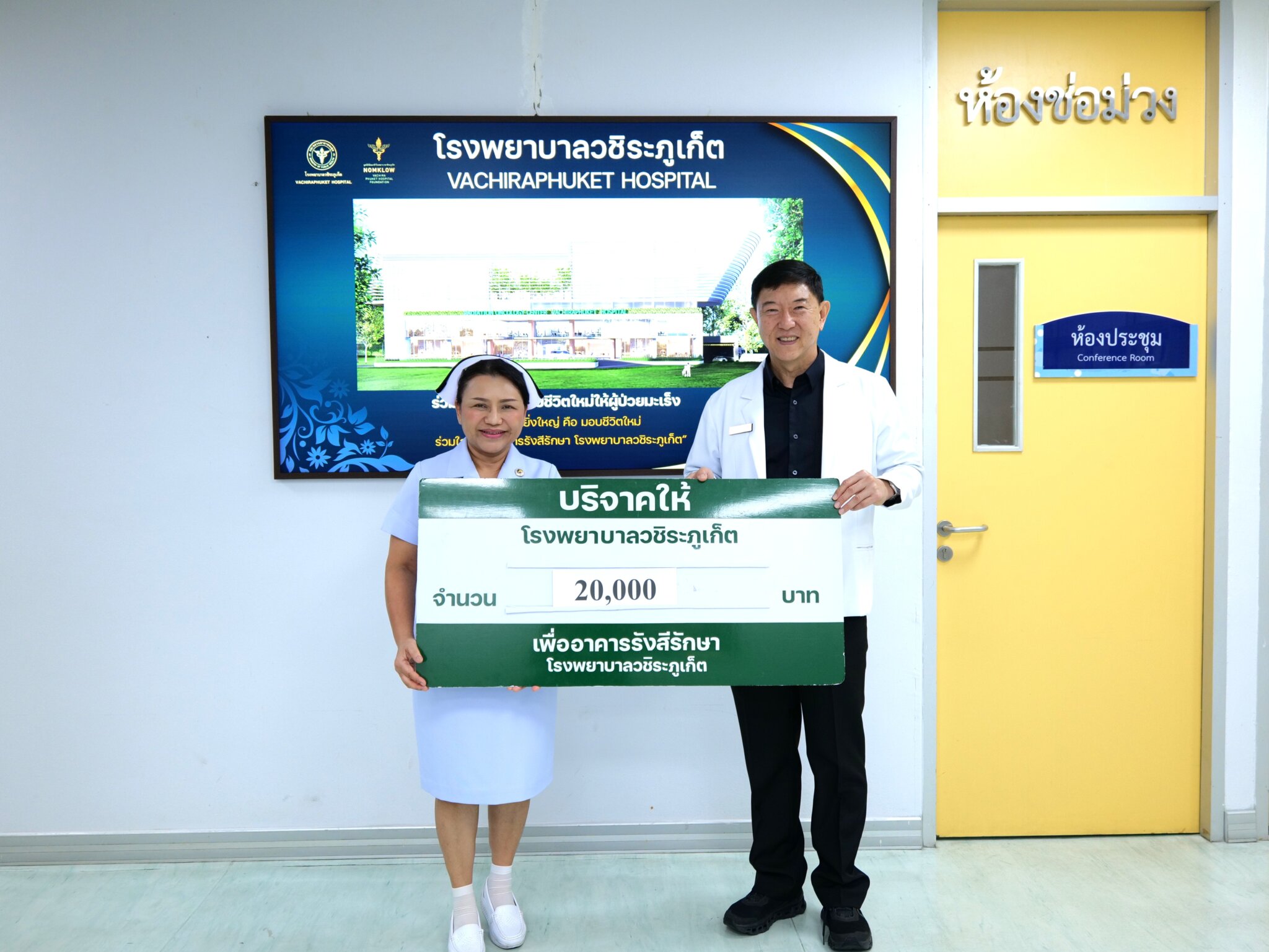 7 มกราคม 2569 คุณพริ้มเพรา รัตนยันต์ บริจาคเงินจำนวน 20,000 บาท เพื่อสมทบทุนจัดซื้อเครื่องมือแพทย์ “อาคารรังสีรักษา” ศูนย์มะเร็งครบวงจร โรงพยาบาลวชิระภูเก็ต Gallery7 มกราคม 2569 คุณพริ้มเพรา รัตนยันต์ บริจาคเงินจำนวน 20,000 บาท เพื่อสมทบทุนจัดซื้อเครื่องมือแพทย์ “อาคารรังสีรักษา” ศูนย์มะเร็งครบวงจร โรงพยาบาลวชิระภูเก็ต