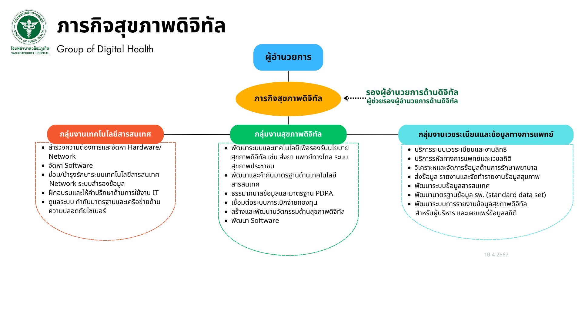 โครงสร้างการบริหาร Vachira Phuket2025-11-07T15:34:21+07:0015 กุมภาพันธ์ 2023|Categories: Digital Health|Tags: โครงสร้างหน่วยงาน| เข้าชม: 1,675 ลิงค์สำหรับนำไปเผยแพร่: https://www.vachiraphuket.go.th/links/jmqu แบ่งปันเรื่องนี้ FacebookXTelegramEmail