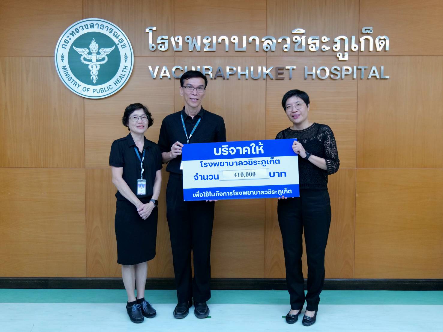 8 ธันวาคม 2568 ครอบครัวสุทธิพัฒนกิจ บริจาคเงินจำนวน 410,000 บาทเพื่อสมทบทุนกิจการโรงพยาบาล โดยมี พญ.ปิยนาถ สกุลพิพัฒน์ รองผู้อำนวยการฝ่ายการแพทย์ เป็นผู้รับมอบ ณ ห้องประชุมช่อม่วง อาคารบ้านคุณพุ่ม ชั้น 5 โรงพยาบาลวชิระภูเก็ต