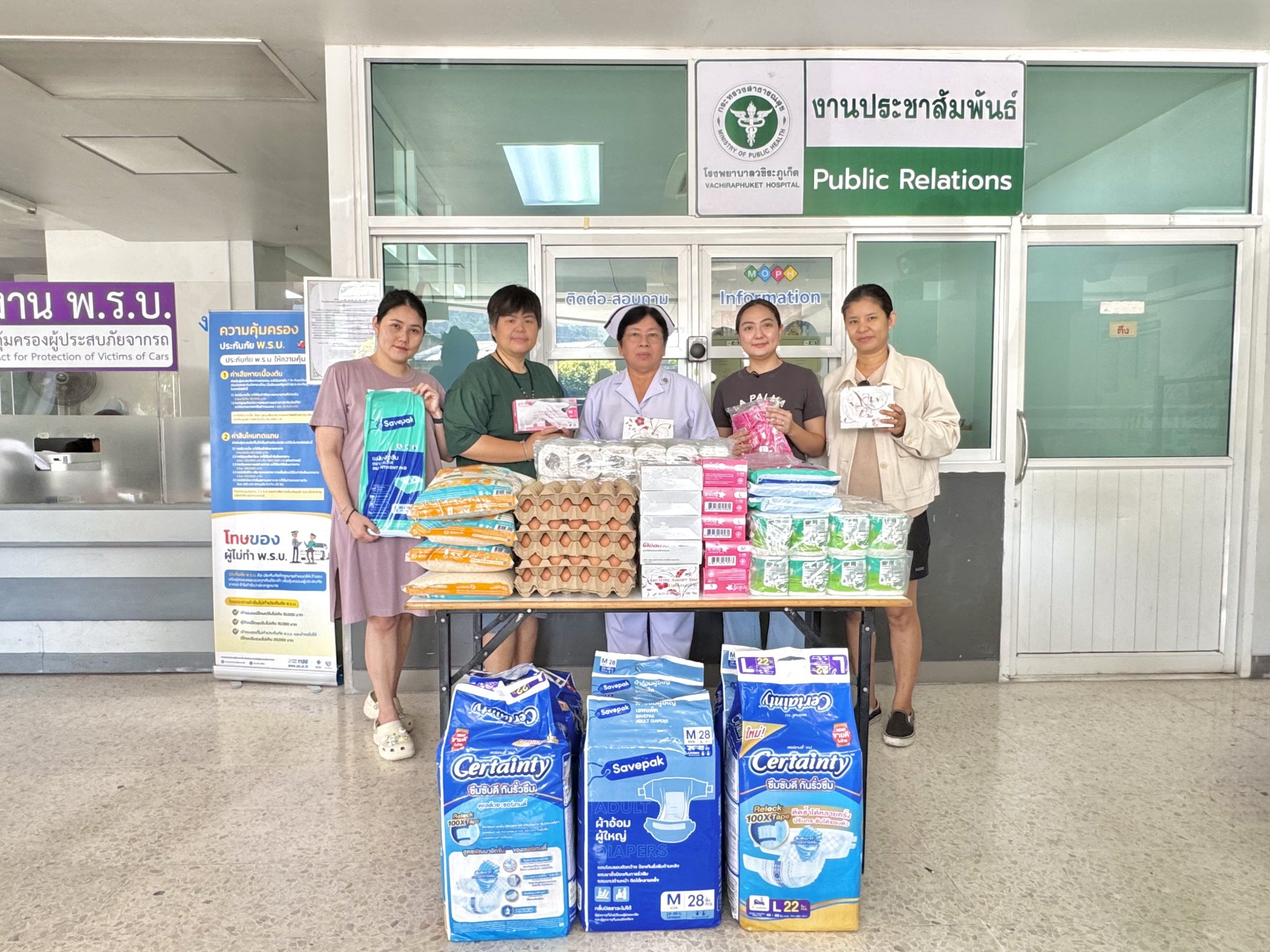 29 เม.ย. 2569 คุณกนิษฐ์ ลิมปานนท์, คุณภูษิตา เอกกิจปรีชา, คุณรังสิมา อินทรฤทธิ์, คุณรัฐวรรณ วงศ์ปัทมเจริญ, คุณฐัชชนันท์ ฉินสวัสดิ์พันธุ์ และคุณภรภัทร เอกกิจปรีชา บริจาคข้าวสาร 20 กก. ไข่ไก่ 5 แผง แพมเพิส 6 ห่อ และของใช้สำหรับผู้ป่วย ให้กับโรงพยาบาลวชิระภูเก็ต เนื่องในโอกาสวันคล้ายวันเกิด โดยมี พว.มนพัทธ์ พรศิริวงศ์ เป็นตัวแทนรับมอบ ณ อาคารผู้ป่วยนอก ชั้น 1 โรงพยาบาลวชิระภูเก็ต
