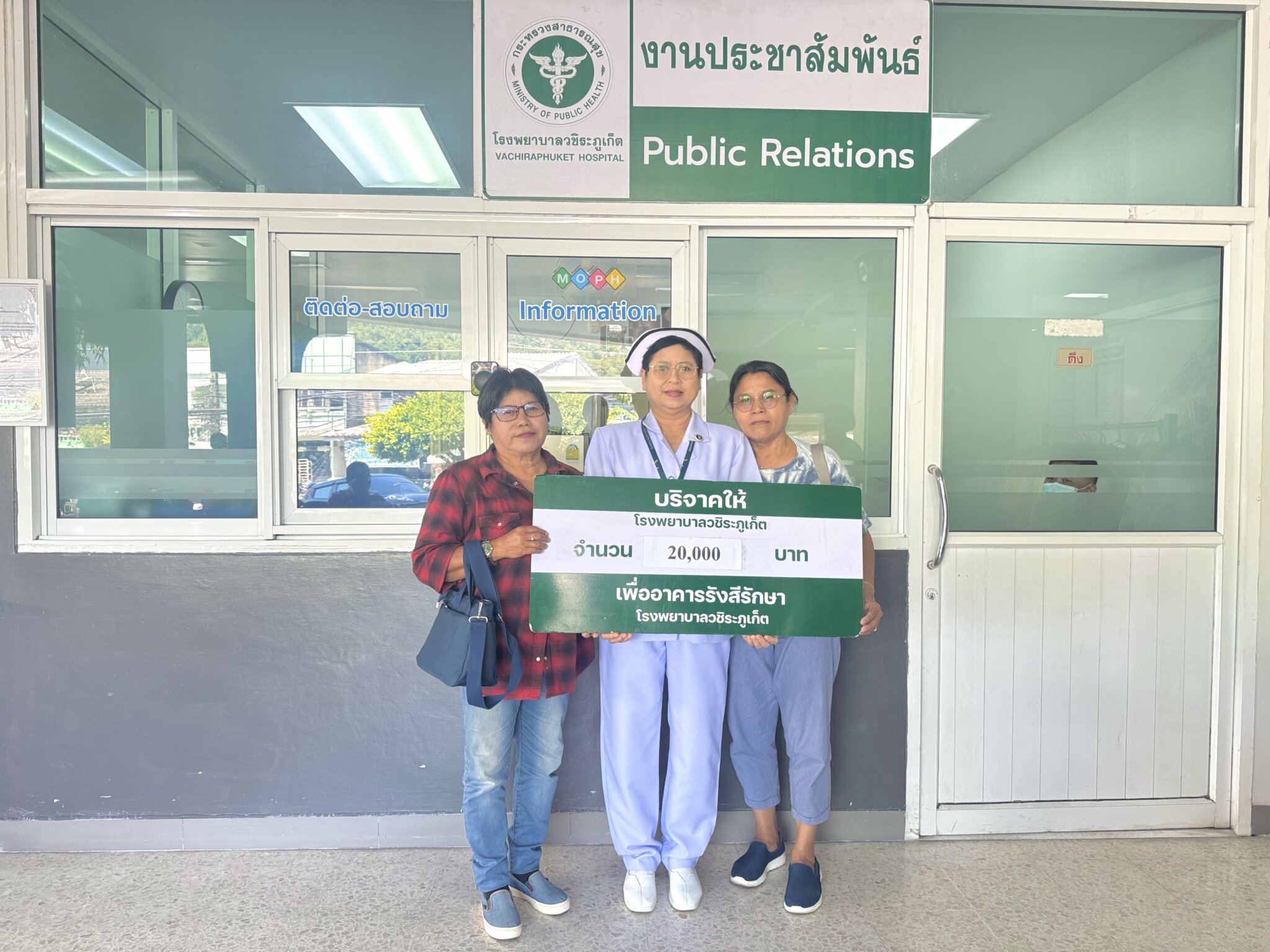 15 ตุลาคม 2568 คุณกมลวรรณ ต่อวงค์ บริจาคเงินจำนวน 20,000 บาท เพื่อสมทบทุนสร้าง อาคารรังสีรักษา “ศูนย์มะเร็งครบวงจร โรงพยาบาลวชิระภูเก็ต” โดยมี พว.วาสนา วีระกิจ พยาบาลวิชาชีพชำนาญการพิเศษ เป็นตัวแทนรับมอบ ณ อาคารผู้ป่วยนอก ชั้น 1 โรงพยาบาลวชิระภูเก็ต