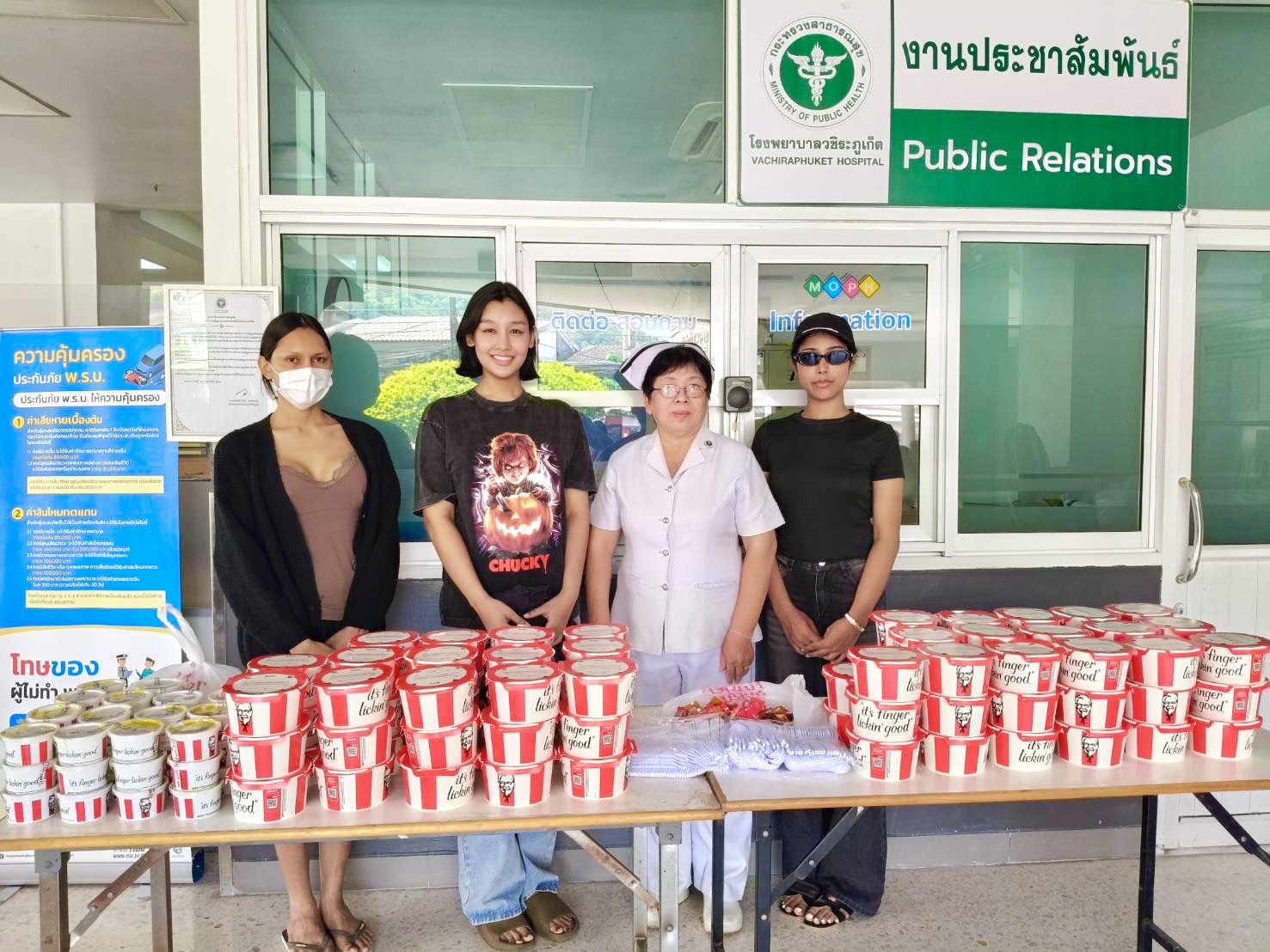 25 กุมภาพันธ์ 2569 คุณกวีพันธ์ วรินทรเวช, คุณสุรวุฒิ เอียดแก้ว และคุณอุสมาน หมันหลี บริจาคข้าวยำไก่แซ่บ และข้าวแกงเขียวหวานไก่ จำนวน 100 กล่อง ให้แก่ผู้มารับบริการและเจ้าหน้าที่โรงพยาบาลวชิระภูเก็ต โดยมี พว.มนพัทธ์ พรศิริวงศ์ เป็นตัวแทนรับมอบ ณ อาคารผู้ป่วยนอกชั้น 1 โรงพยาบาลวชิระภูเก็ต