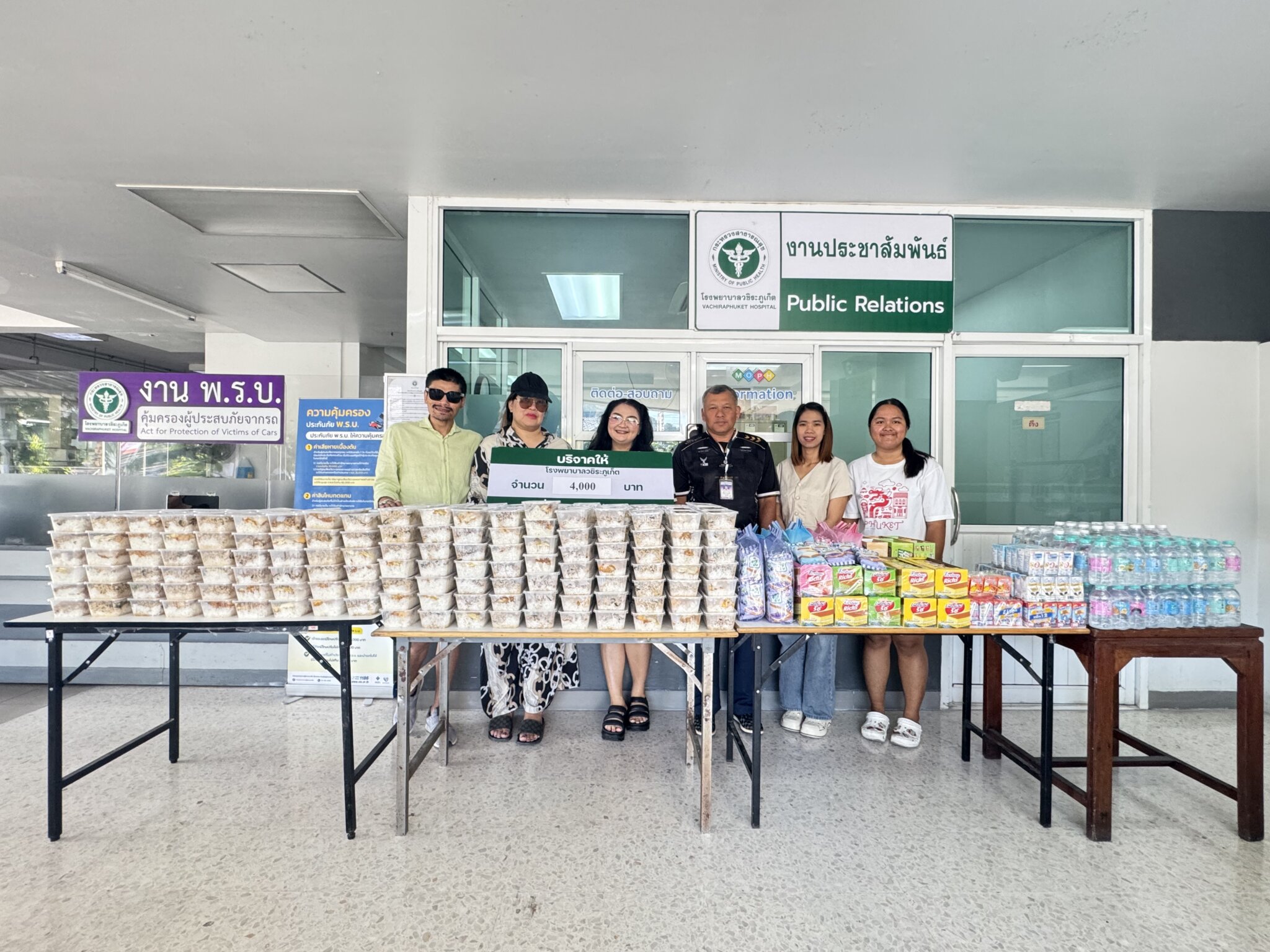 31 มกราคม 2569 คุณจิตรชญา อินกลัด, คุณสุภากาญจน์ ธรรมรักษ์ (บริษัท ทเวนตี้ทรี อินเตอร์ กรุ๊ป, คุณนนท์ธนิต ธนัฎฐ์กิตติกุล บริจาคเงินจำนวน 4,000 บาท เพื่อสมทบทุนจัดซื้อเครื่องมือแพทย์ “อาคารรังสีรักษา” ศูนย์มะเร็งครบวงจร โรงพยาบาลวชิระภูเก็ต พร้อมด้วย ข้าวกระเพราไก่ไข่ดาว 380 กล่อง เครื่องดื่มและขนม ให้แก่เจ้าเจ้าหน้าที่และผู้มารับบริการ โดยมี นายกิตติโชค สิงสันจิตร เวรตรวจการกลุ่มภารกิจด้านอำนวยการ เป็นตัวแทนรับมอบ ณ อาคารผู้ป่วยนอก ชั้น 1 โรงพยาบาลวชิระภูเก็ต