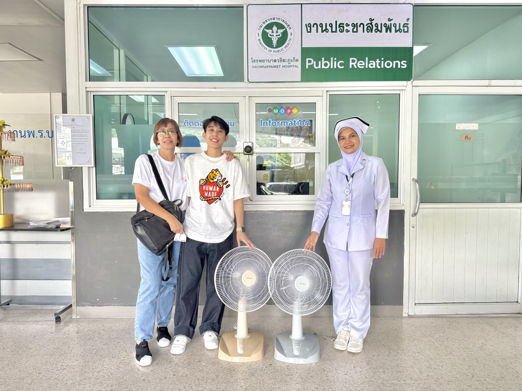 16 ตุลาคม 2568 คุณจุฑามาศ ชูชุ่มชื่น บริจาคพัดลมตั้งพื้นขนาด 16 นิ้ว จำนวน 2 ตัว เนื่องในโอกาาวันคล้ายวันเกิด ให้กับหอผู้ป่วยอายุรกรรมหญิง โรงพยาบาลวชิระภูเก็ต โดยมี พว.สุปราณี สร้างเมือง เป็นตัวแทนรับมอบ ณ อาคารผู้ป่วยนอก ชั้น 1 โรงพยาบาลวชิระภูเก็ต