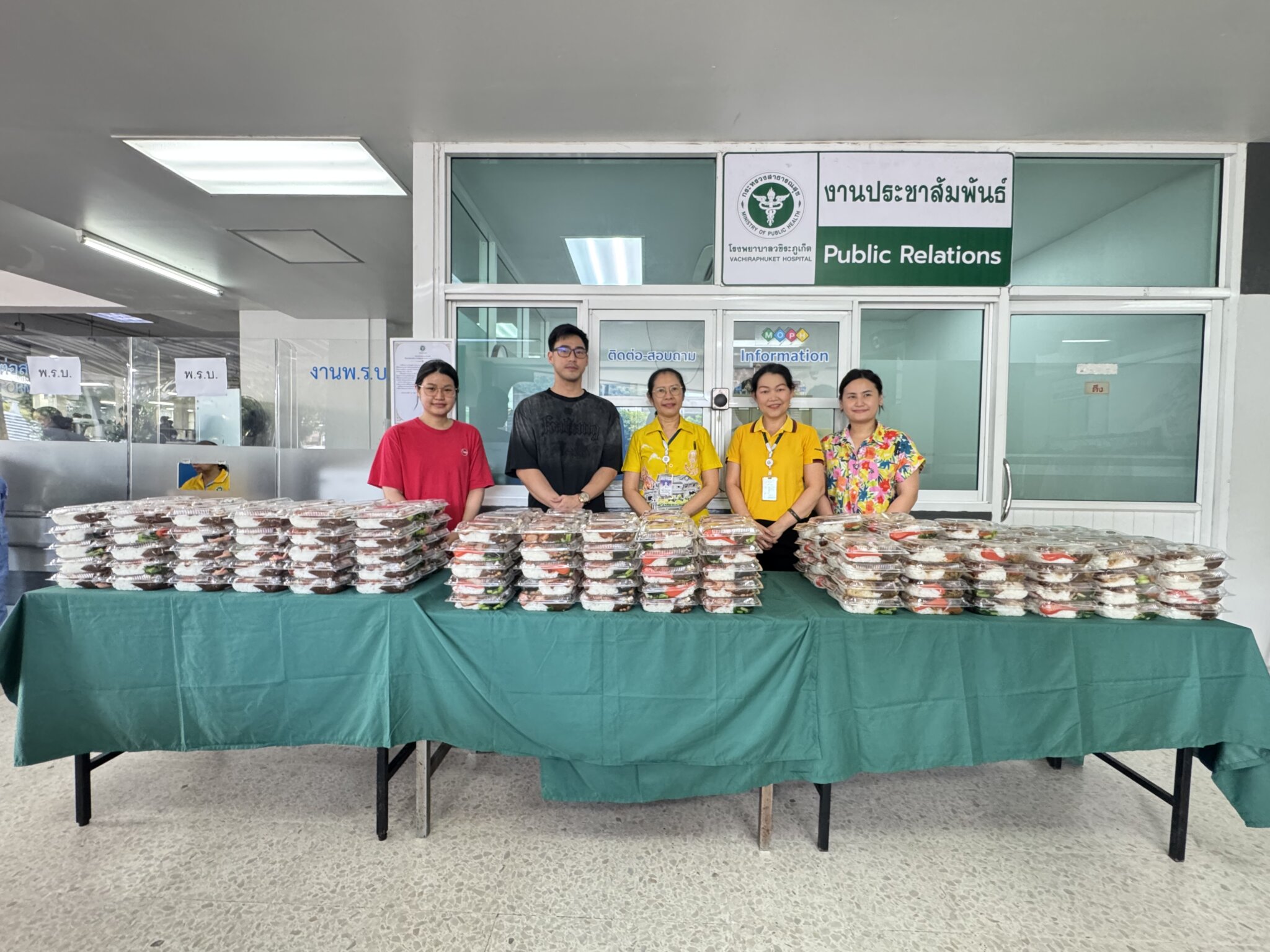 6 ตุลาคม 2568 คุณชลลัย ตั้งธีระสุนันท์ บริจาคข้าวหน้าเป็ด ข้าวหมูแดง และข้าวขาหมู รวม  300 กล่อง ให้แก่ผู้มารับบริการและเจ้าหน้าที่โรงพยาบาลวชิระภูเก็ต โดยมีนางปรารีชาติ นำชัยเจนกิจ หัวหน้าศูนย์ประสานรับบริจาค และนางกมลวรรณ มูสิกะโปน หัวหน้างานประชาสัมพันธ์ เป็นตัวแทนรับมอบ ณ อาคารผู้ป่วยนอกชั้น 1 โรงพยาบาลวชิระภูเก็ต