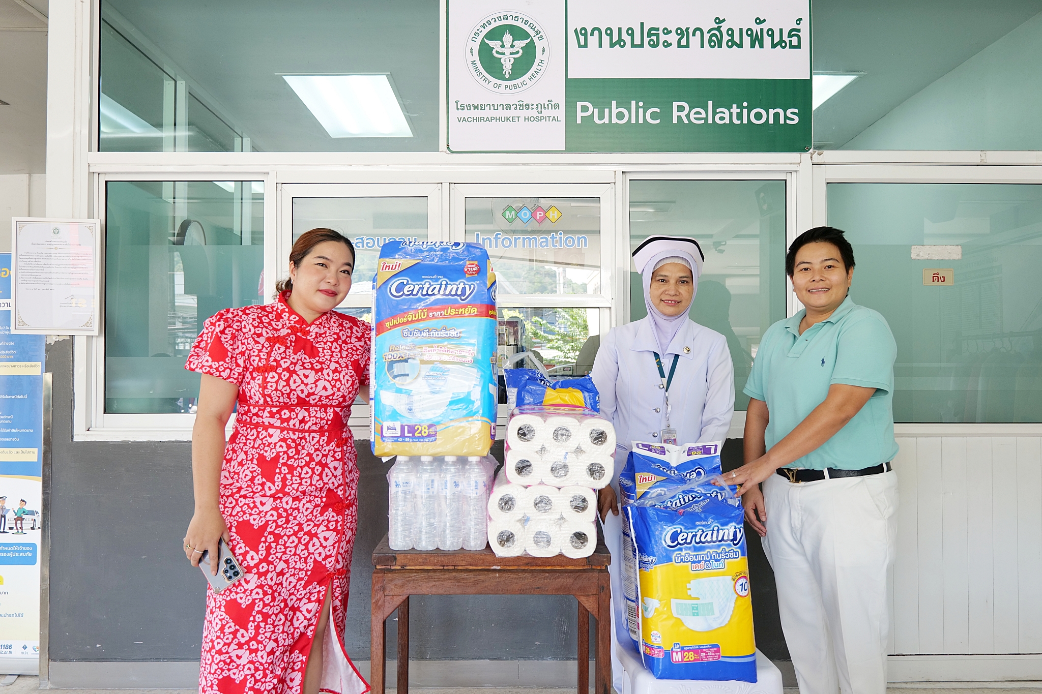 18 กุมภาพันธ์ 2569 คุณณิชา ชัญชกร และคุณกฤตธจิรา ติ้วสกุล บริจาคแพมเพิสสำหรับผู้ใหญ่ และน้ำดื่ม ให้กับโรงพยาบาลวชิระภูเก็ต โดยมี พว.สุปราณี สร้างเมือง เป็นตัวแทนรับมอบ ณ อาคารผู้ป่วยนอก ชั้น 1 โรงพยาบาลวชิระภูเก็ต