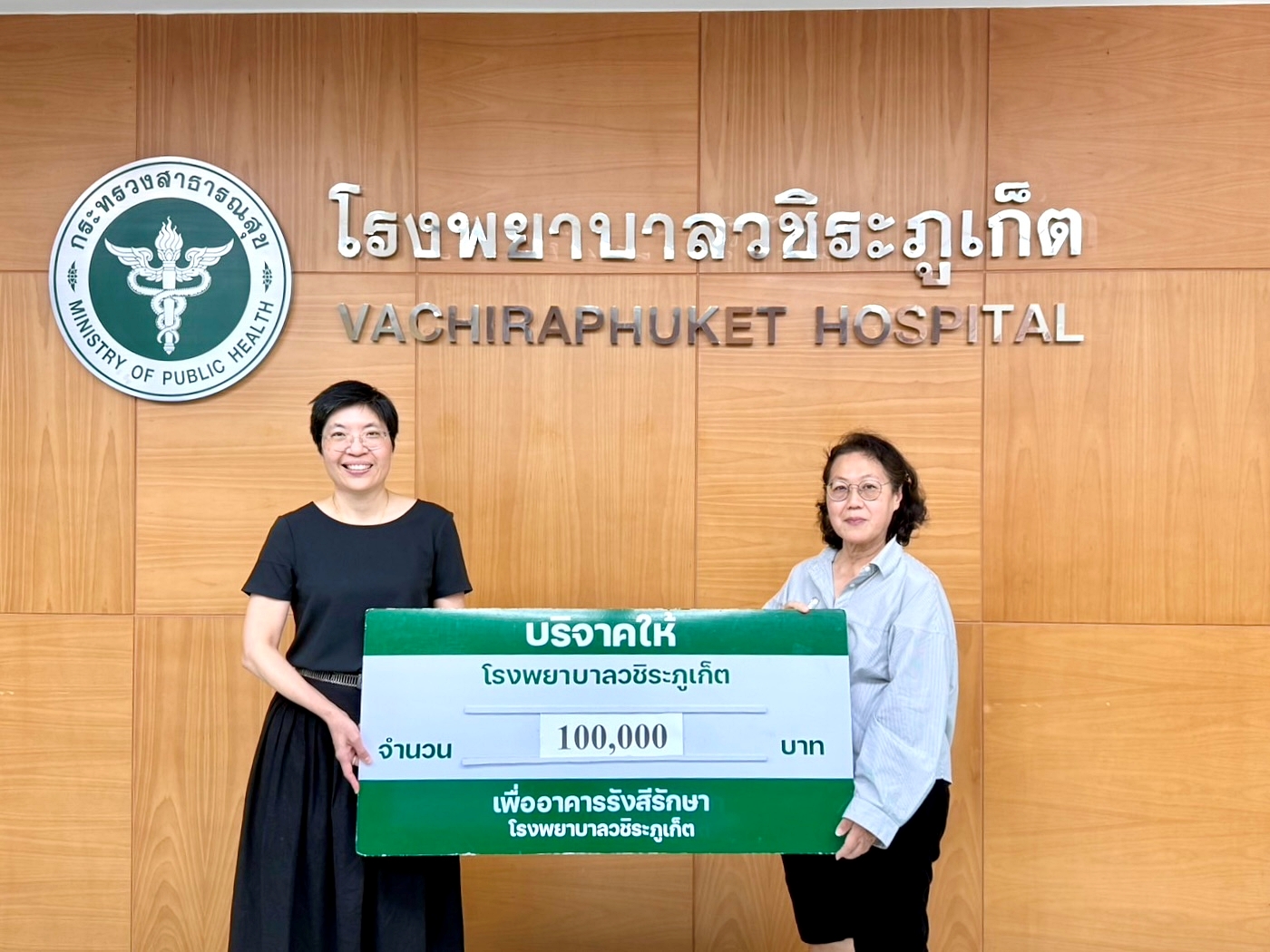 29 ธันวาคม 2568 คุณดวงตา ศันสนียเมธา และครอบครัว บริจาคเงิน 100,000 บาท เพื่อสมทบทุนสร้าง อาคารรังสีรักษา “ศูนย์มะเร็งครบวงจร โรงพยาบาลวชิระภูเก็ต” โดยมี พญ.ปิยนาถ สกุลพิพัฒน์ รองผู้อำนวยการฝ่ายการแพทย์ เป็นผู้รับมอบ ณ ห้องประชุมช่อม่วง อาคารบ้านคุณพุ่ม ชั้น 5 โรงพยาบาลวชิระภูเก็ต