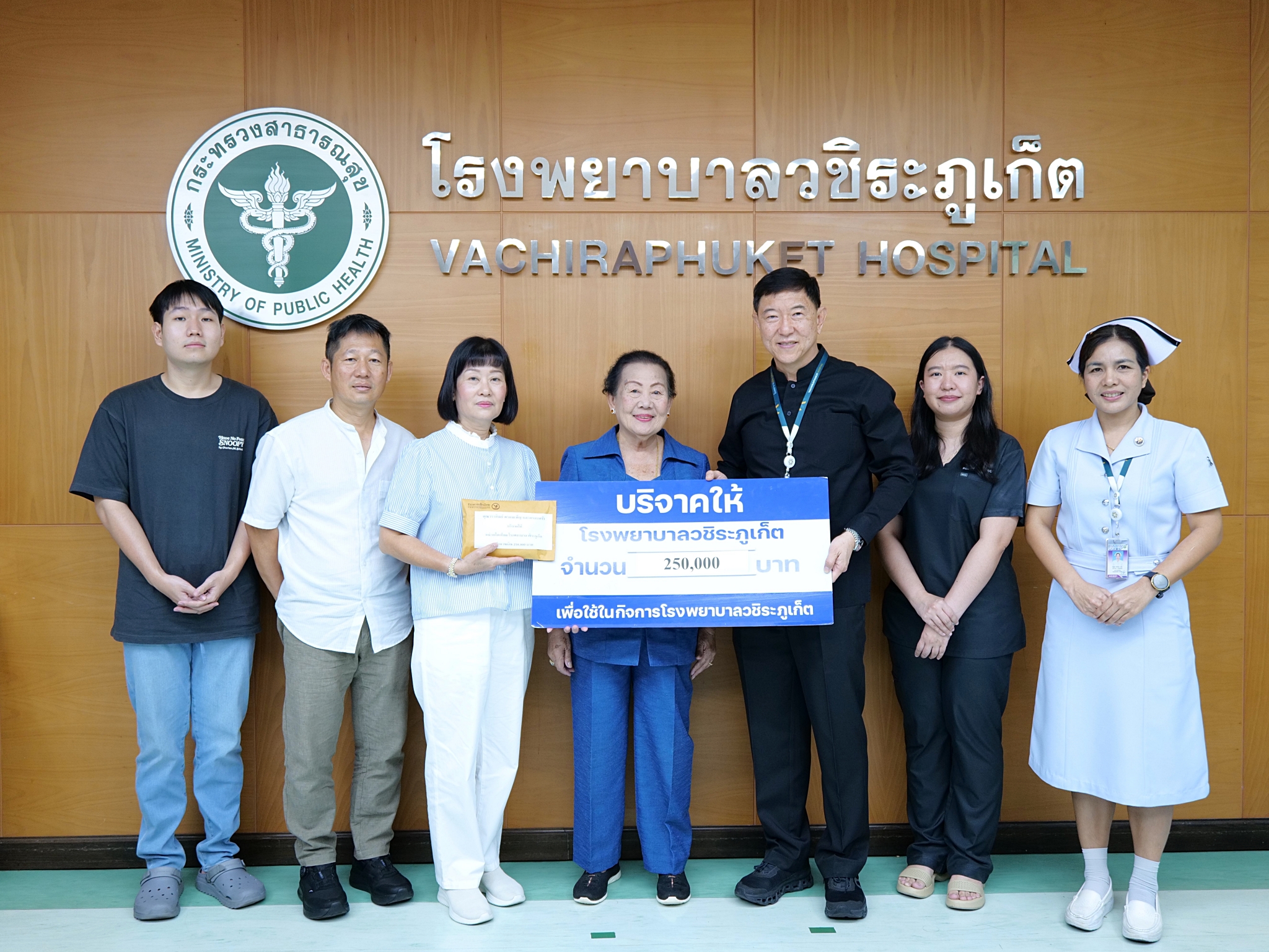 29 ธันวาคม 2568 คุณวราทิตย์ พรหมเพ็ญ และครอบครัว บริจาคเงินจำนวน 250,000 บาท เพื่อสมทบทุนจัดซื้อเครื่องมือแพทย์ ให้กับหน่วยไตเทียม โรงพยาบาลวชิระภูเก็ต โดยมี นพ.วีระศักดิ์ หล่อทองคำ ผู้อำนวยการโรงพยาบาลวชิระภูเก็ต พร้อมด้วย พญ.พิชชาภรณ์ โสนุช อายุรแพทย์โรคไต และ พว.นิตยา ชำนินา เป็นผู้รับมอบ ณ ห้องประชุมช่อม่วง อาคารบ้านคุณพุ่ม ชั้น 5 โรงพยาบาลวชิระภูเก็ต
