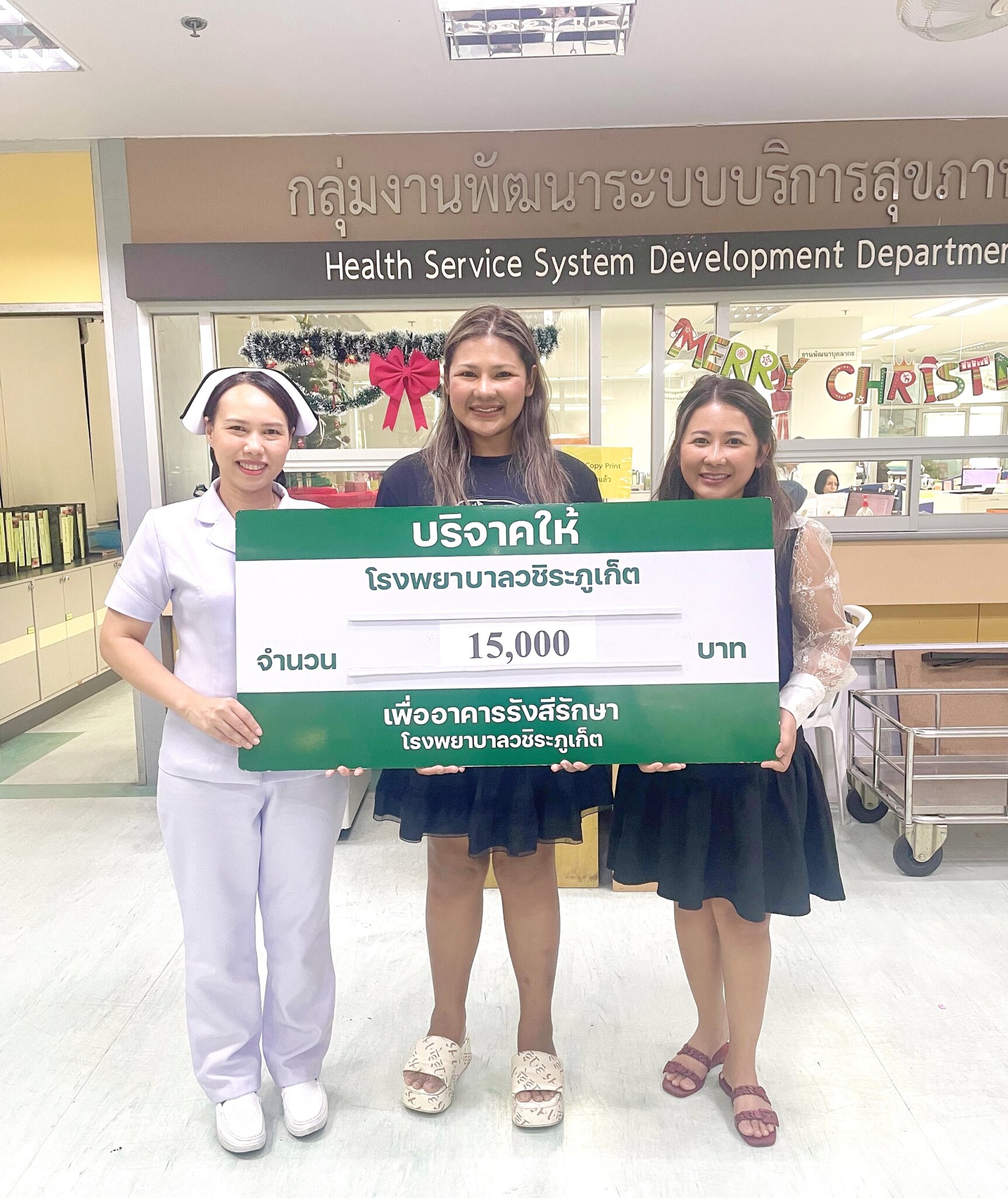 29 ธันวาคม 2568 คุณวราภรณ์ แก้วสุวรรณ บริจาคเงิน 15,000 บาท เพื่อสมทบทุนสร้าง อาคารรังสีรักษา “ศูนย์มะเร็งครบวงจร โรงพยาบาลวชิระภูเก็ต” โดยมี พว.ขวัญฤทัย เครือพานิช หัวหน้าหอ ผู้ป่วยหนักอายุรกรรม เป็นตัวแทนรับมอบ ณ อาคารบ้านคุณพุ่ม ชั้น 5 โรงพยาบาลวชิระภูเก็ต