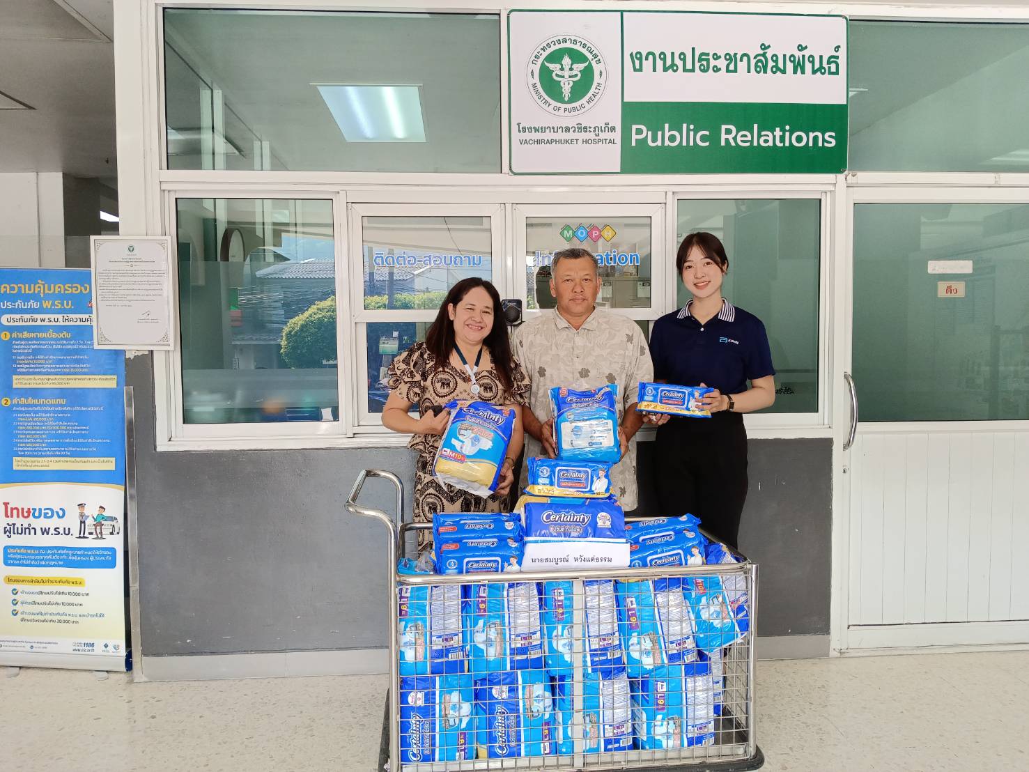 6 เม.ย. 2569 คุณสมบูรณ์ หวังแต่ธรรม บริจาคผ้าอ้อมผู้ใหญ่ 18 แพ็ค และทิชชู่เปียก 9 ห่อ ให้กับโรงพยาบาลวชิระภูเก็ต เนื่องในโอกาสวันคล้ายวันเกิด โดยมี คุณกิตติโชค สิงสันจิตร เวรตรวจการกลุ่มภารกิจด้านอำนวยการ เป็นตัวแทนรับมอบ ณ อาคารผู้ป่วยนอกชั้น 1 โรงพยาบาลวชิระภูเก็ต