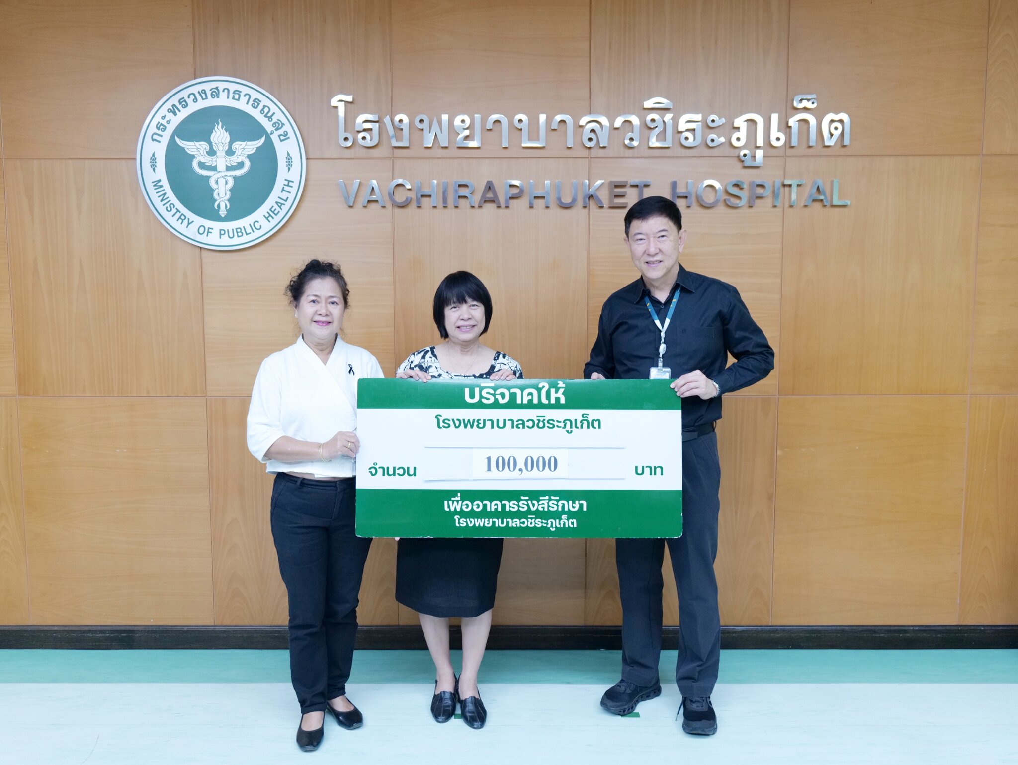 11 ธันวาคม 2568 คุณสุพัตรา ธรรมธิษฐาน และครอบครัว “ ธรรมธิษฐาน” บริจาคเงินจำนวน 100,000 บาท เพื่อสมทบทุนสร้าง “อาคารรังสีรักษา” ศูนย์มะเร็งครบวงจร โรงพยาบาลวชิระภูเก็ต และอุทิศให้คุณพ่อชัยสิทธิ์ – คุณแม่สุมนา ธรรมธิษฐาน โดยมี นพ.วีระศักดิ์ หล่อทองคำ ผู้อำนวยการโรงพยาบาลวชิระภูเก็ต เป็นผู้รับมอบ ณ ห้องประชุมช่อม่วง อาคารบ้านคุณพุ่ม ชั้น 5 โรงพยาบาลวชิระภูเก็ต