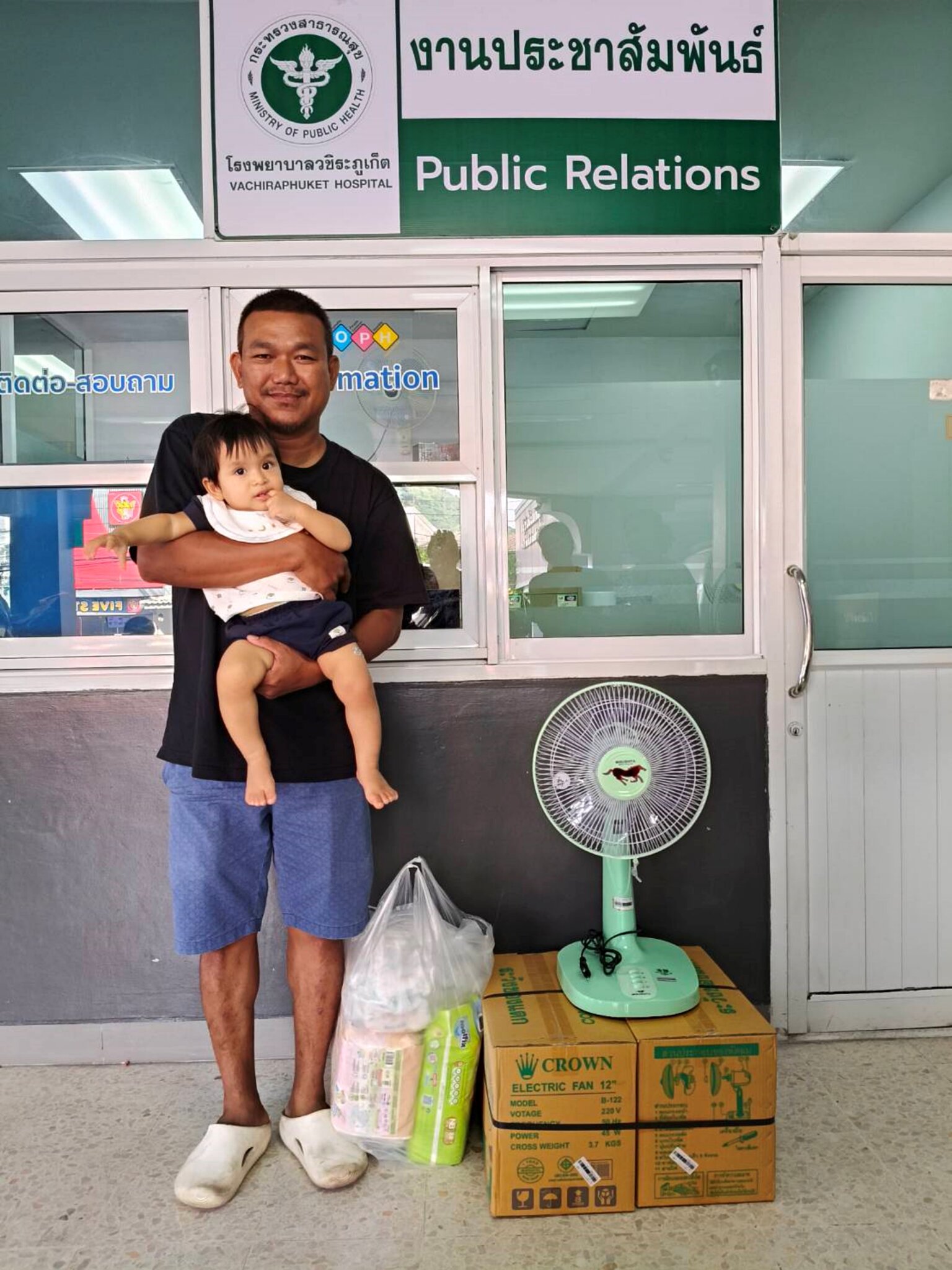 10 เมษายน 2569 ด.ช.อธิปชา แสงตัน บริจาคพัดลม 3 ตัว และผ้าอ้อมสำหรับทารกแรกเกิด ให้กับโรงพยาบาลวชิระภูเก็ต ณ อาคารผู้ป่วยนอกชั้น 1 โรงพยาบาลวชิระภูเก็ต