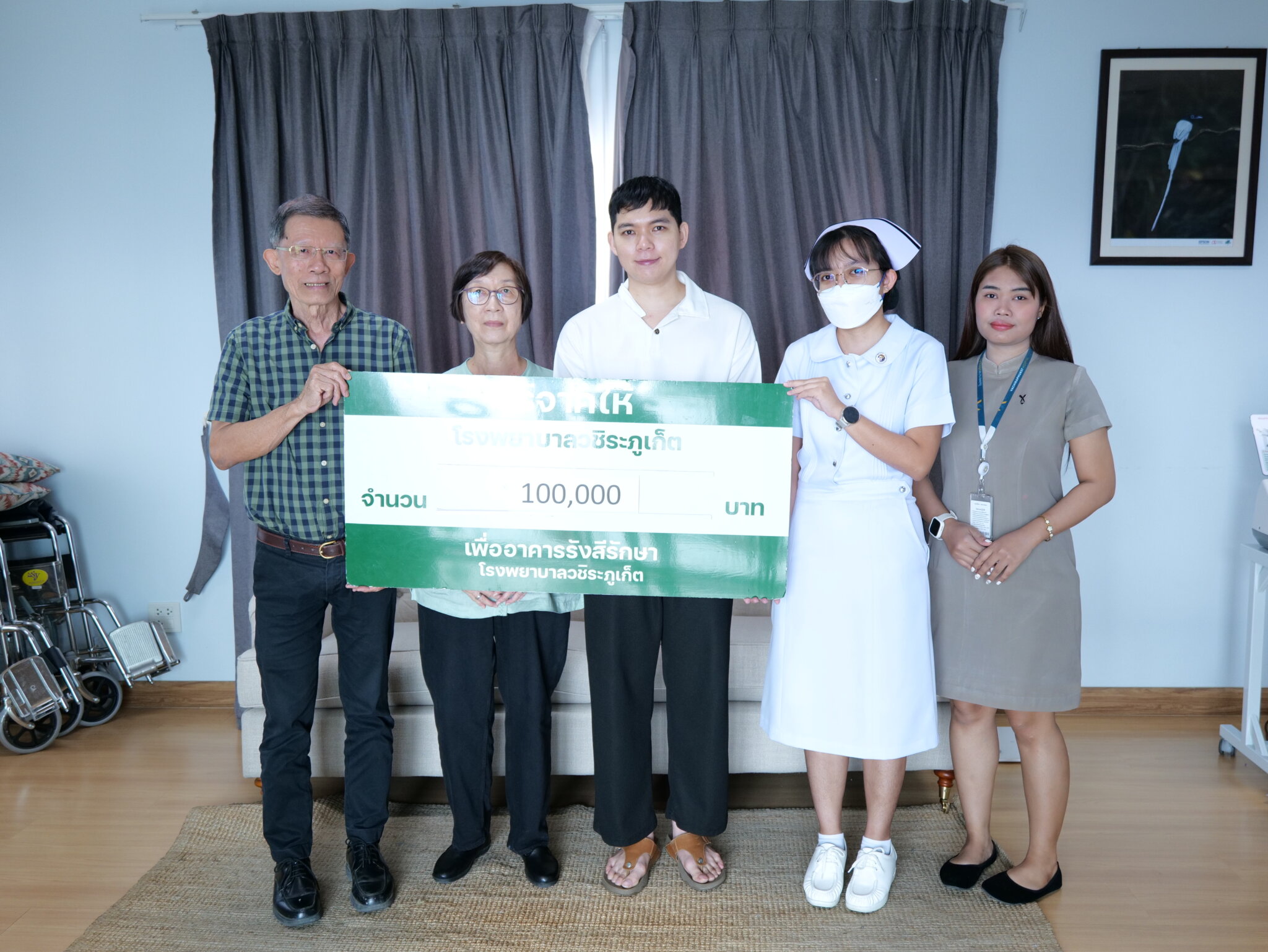 10 มกราคม 2569 คุณภานุช และคุณประพิมพรรณ จันทร์นวล บริจาคเงินจำนวน 100,000 บาท เพื่อสมทบทุนจัดซื้อเครื่องมือแพทย์ “อาคารรังสีรักษา” ศูนย์มะเร็งครบวงจร โรงพยาบาลวชิระภูเก็ต โดยมี พว.พิจิตรา ทองยวญ พยาบาลวิชาชีพปฏิบัติการ เป็นตัวแทนรับมอบ ณ ศูนย์ดูแลผู้มีอุปการคุณ โรงพยาบาลวชิระภูเก็ต