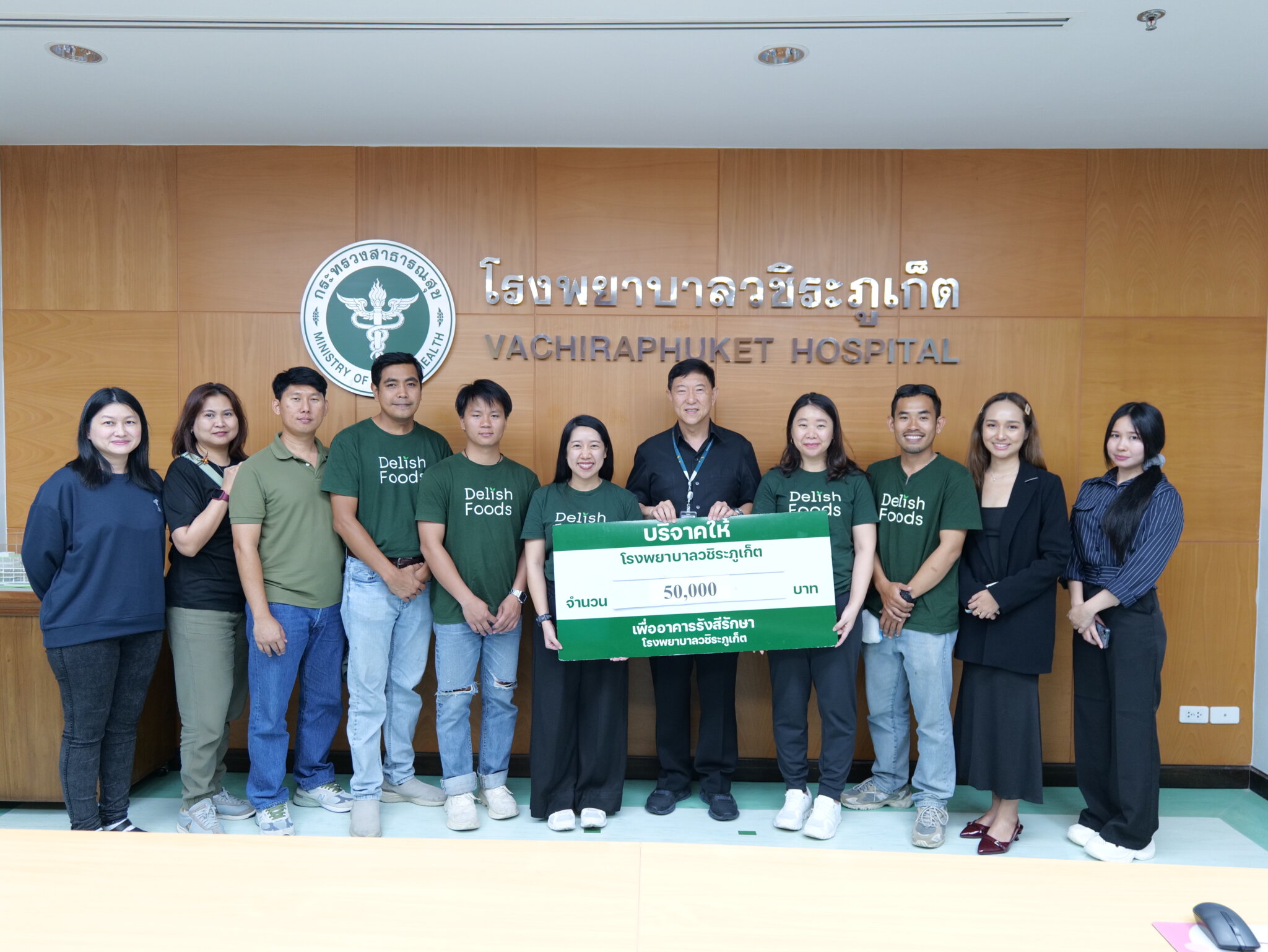 17 พฤศจิกายน 2568 บริษัท เดลิช ฟู๊ดส์ จำกัด (สำนักงานใหญ่) บริจาคเงินจำนวน 50,000 บาท เพื่อสมทบทุนสร้าง “อาคารรังสีรักษา” ศูนย์มะเร็งครบวงจร โรงพยาบาลวชิระภูเก็ต โดยมี นพ.วีระศักดิ์ หล่อทองคำ ผู้อำนวยการโรงพยาบาลวชิระภูเก็ต เป็นผู้รับมอบ ณ ห้องประชุมช่อม่วง อาคารบ้านคุณพุ่ม ชั้น 5 โรงพยาบาลวชิระภูเก็ต