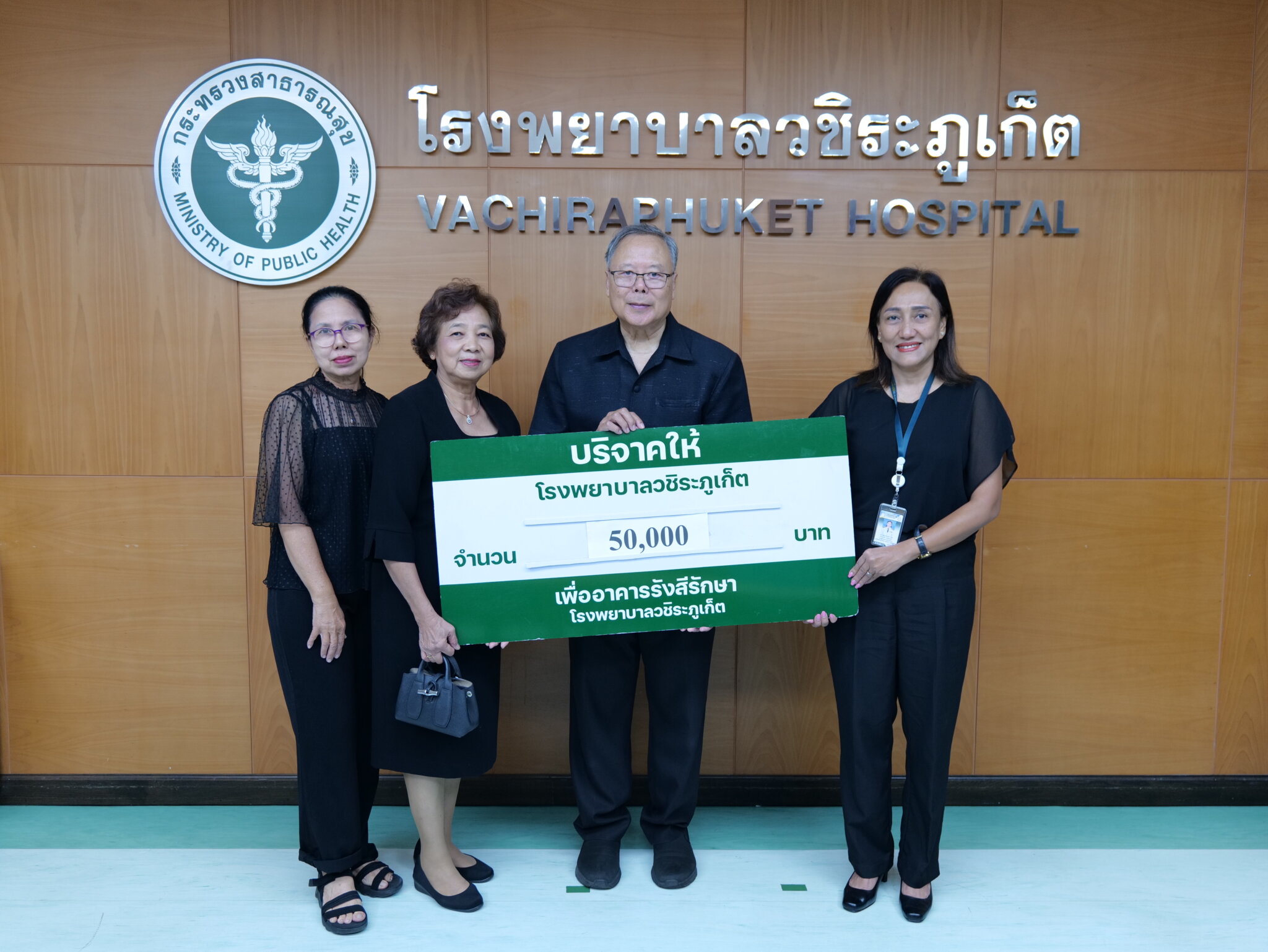 20 พฤศจิกายน 2568 คุณบัณฑูร ทองตัน บริจาคเงินจำนวน 50,000 บาท เพื่อสมทบทุนสร้าง อาคารรังสีรักษา “ศูนย์มะเร็งครบวงจร โรงพยาบาลวชิระภูเก็ต” โดยมี นางระวิเพ็ญ กิ่งแก้ว รองผู้อำนวยการฝ่ายบริหารโรงพยาบาลวชิระภูเก็ต เป็นผู้รับมอบ ณ ห้องประชุมช่อม่วง อาคารบ้านคุณพุ่ม ชั้น 5 โรงพยาบาลวชิระภูเก็ต
