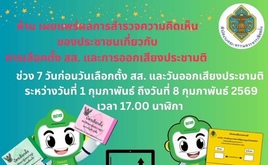 นอกจากนี้ ห้ามมิให้ผู้ใดเปิดเผยหรือเผยแพร่ผลการสำรวจความคิดเห็นของประชาชนเกี่ยวกับการออกเสียงลงคะแนน ในระหว่างเวลา 7 วันก่อนวันเลือกตั้งจนถึงเวลาปิดการออกเสียงลงคะแนน ระหว่างวันที่ 1 กุมภาพันธ์ 2569 ถึงวันที่ 8 กุมภาพันธ์ 2569 เวลา 17.00 นาฬิกา
