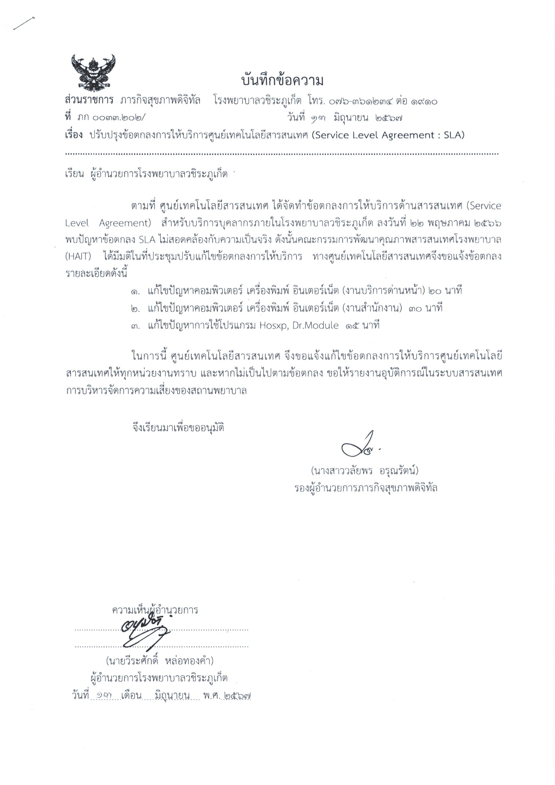 ประกาศข้อตกลงการให้บริการ (SLA) Vachira Phuket2024-07-17T14:12:57+07:0015 กุมภาพันธ์ 2023|Categories: ITC-News|Tags: SLA, ข้อตกลงการให้บริการ| ปรับปรุงเมื่อ 2 ปี ago เอกสารแนบ # File Date added File size Downloads 1 SLA ปรับปรุงใหม่พ.ค67_0 8 กรกฎาคม 2024 21:18 น. 252 KB 182 2 SLA ปรับปรุง พค.2567 8 กรกฎาคม 2024 21:16 น. 751 KB 168 เข้าชม: 3,399 ลิงค์สำหรับนำไปเผยแพร่: https://www.vachiraphuket.go.th/links/tuhm แบ่งปันเรื่องนี้ FacebookXTelegramEmail