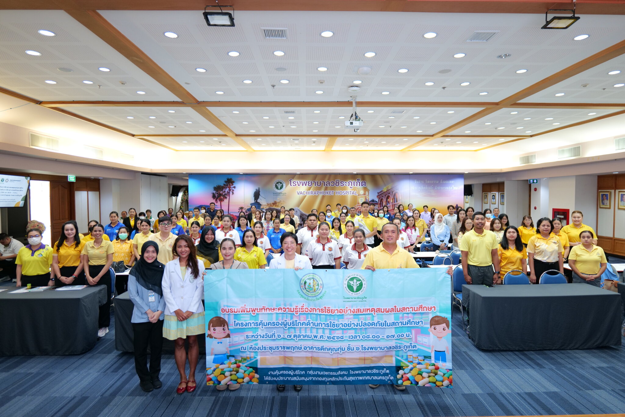 การอบรมครั้งนี้มีวัตถุประสงค์เพื่อเสริมสร้างความรู้ ความเข้าใจ และทักษะที่ถูกต้องในการใช้ยาอย่างเหมาะสมในสถานศึกษา ให้แก่ครู บุคลากรทางการศึกษา และเจ้าหน้าที่สาธารณสุข โดยจัดขึ้น ณ ห้องประชุมราชพฤกษ์ อาคารบ้านคุณพุ่ม ชั้น 6 โรงพยาบาลวชิระภูเก็ต