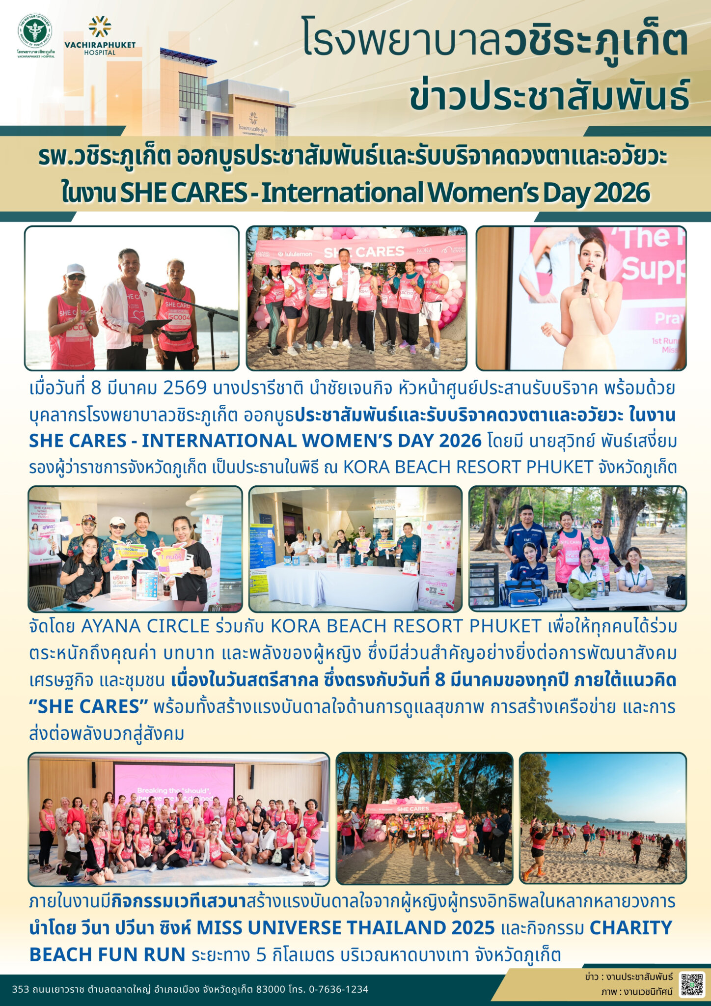 รพ.วชิระภูเก็ต ออกบูธประชาสัมพันธ์และรับบริจาคดวงตาและอวัยวะ ในงาน SHE CARES – International Women’s Day 2026 มารีน่า เหลาะเหม2026-03-10T15:50:29+07:0010 มีนาคม 2026|Categories: ข่าวประชาสัมพันธ์| View Larger Image ปรับปรุงเมื่อ 4 ชั่วโมง ago เข้าชม: 41 ลิงค์สำหรับนำไปเผยแพร่: https://www.vachiraphuket.go.th/links/h7ll แบ่งปันเรื่องนี้ FacebookXTelegramEmail