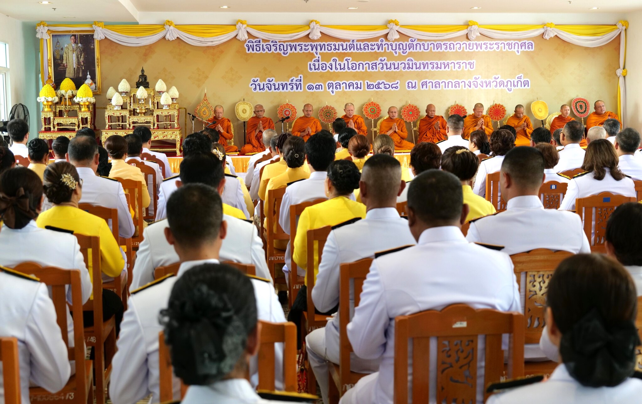 ภายในงานมีพิธีเจริญพระพุทธมนต์ ทำบุญตักบาตรพระสงฆ์ จำนวน 40 รูป เพื่อถวายเป็นพระราชกุศล และพิธีวางพวงมาลาถวายราชสักการะ โดยมี นายศรัณย์ศักด์ ศรีเครือเนตร ผู้ว่าราชการจังหวัดภูเก็ต เป็นประธานในพิธี ณ หอประชุมมหิศรภักดี ศาลากลางจังหวัดภูเก็ต