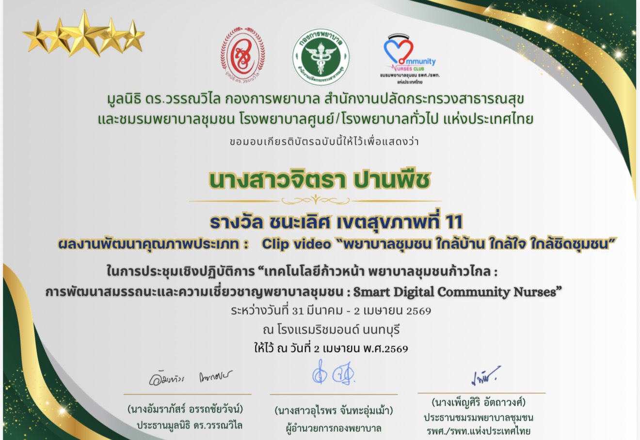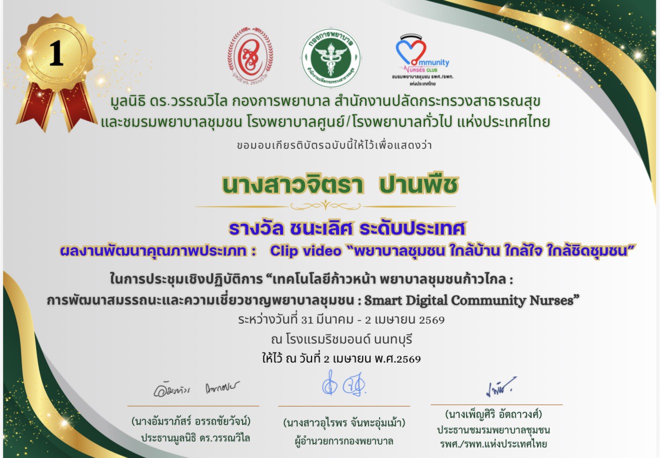 ความสำเร็จดังกล่าวสะท้อนถึงศักยภาพของบุคลากรในการประยุกต์ใช้เทคโนโลยีเพื่อพัฒนางานพยาบาลชุมชน และยกระดับการเข้าถึงบริการสุขภาพของประชาชนอย่างมีประสิทธิภาพและทั่วถึง