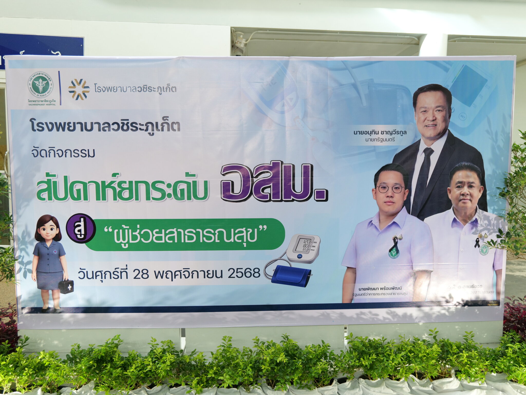 28 พฤศจิกายน 2568 กลุ่มงานเวชกรรมสังคม โรงพยาบาลวชิระภูเก็ต จัดกิจกรรมยกระดับ อสม. สู่ “ผู้ช่วยสาธารณสุข” โดยมี พญ.ปิยนาถ สกุลพิพัฒน์ รองผู้อำนวยการฝ่ายการแพทย์ เป็นประธานเปิดงาน และมี นพ.ธีรพงศ์ อร่ามเรือง หัวหน้ากลุ่มงานเวชกรรมสังคม กล่าวรายงานวัตถุประสงค์ ณ บริเวณลานหน้าคลินิกเบาหวาน 360 องศา โรงพยาบาลวชิระภูเก็ต