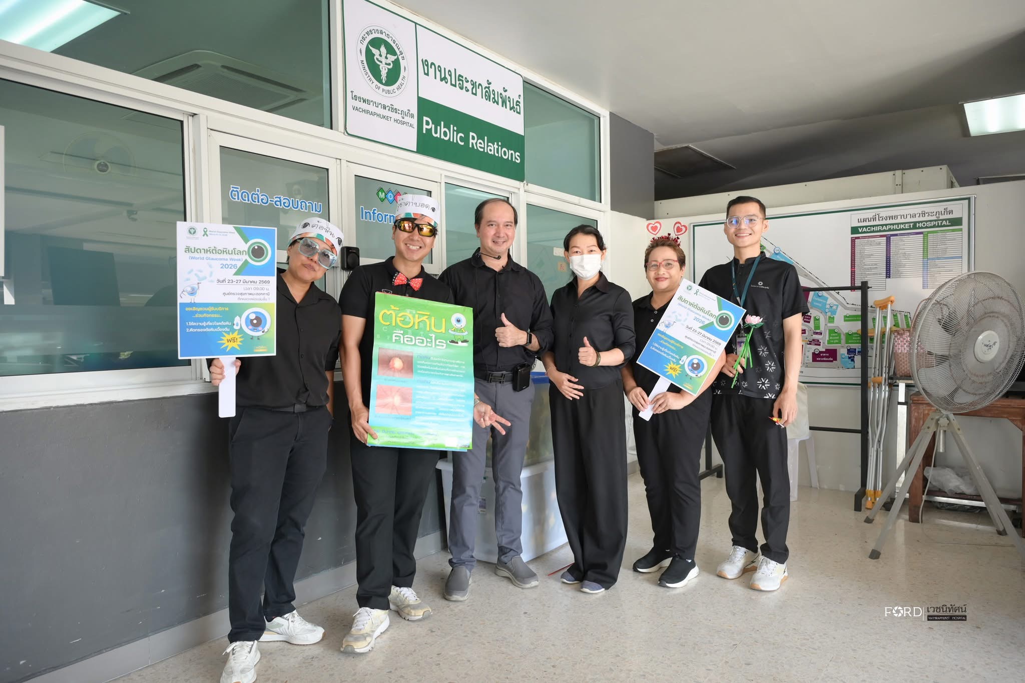 24 มีนาคม 2569 โรงพยาบาลวชิระภูเก็ต จัดกิจกรรมรณรงค์เนื่องใน “สัปดาห์ต้อหินโลก 2569” (World Glaucoma Week 2026) โดยมี นพ.อสิ กำจร นายแพทย์ชำนาญการด้านจักษุวิทยา (สาขาต้อหิน) พร้อมด้วยบุคลากรของโรงพยาบาล ร่วมเดินรณรงค์เพื่อสร้างความตระหนักรู้เกี่ยวกับโรคต้อหิน ซึ่งเป็นภัยเงียบที่อาจนำไปสู่การสูญเสียการมองเห็นโดยไม่รู้ตัว