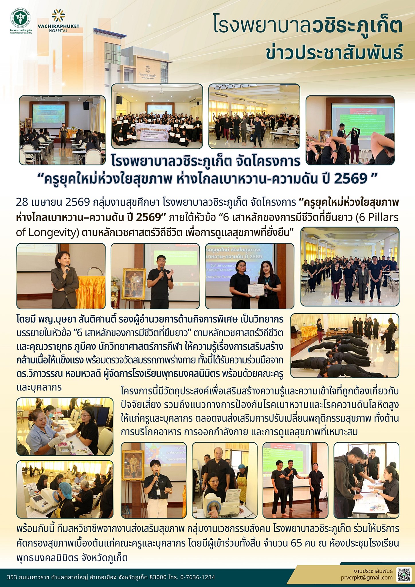 โรงพยาบาลวชิระภูเก็ต จัดโครงการ “ครูยุคใหม่ห่วงใยสุขภาพ ห่างไกลเบาหวาน-ความดัน ปี 2569 ” อภิญญา เอ่งฉ้วน2026-04-29T20:27:34+07:0029 เมษายน 2026|Categories: ข่าวประชาสัมพันธ์| View Larger Image ปรับปรุงเมื่อ 54 นาที ago เข้าชม: 4 ลิงค์สำหรับนำไปเผยแพร่: https://www.vachiraphuket.go.th/go/b6ho แบ่งปันเรื่องนี้ FacebookXTelegramEmail