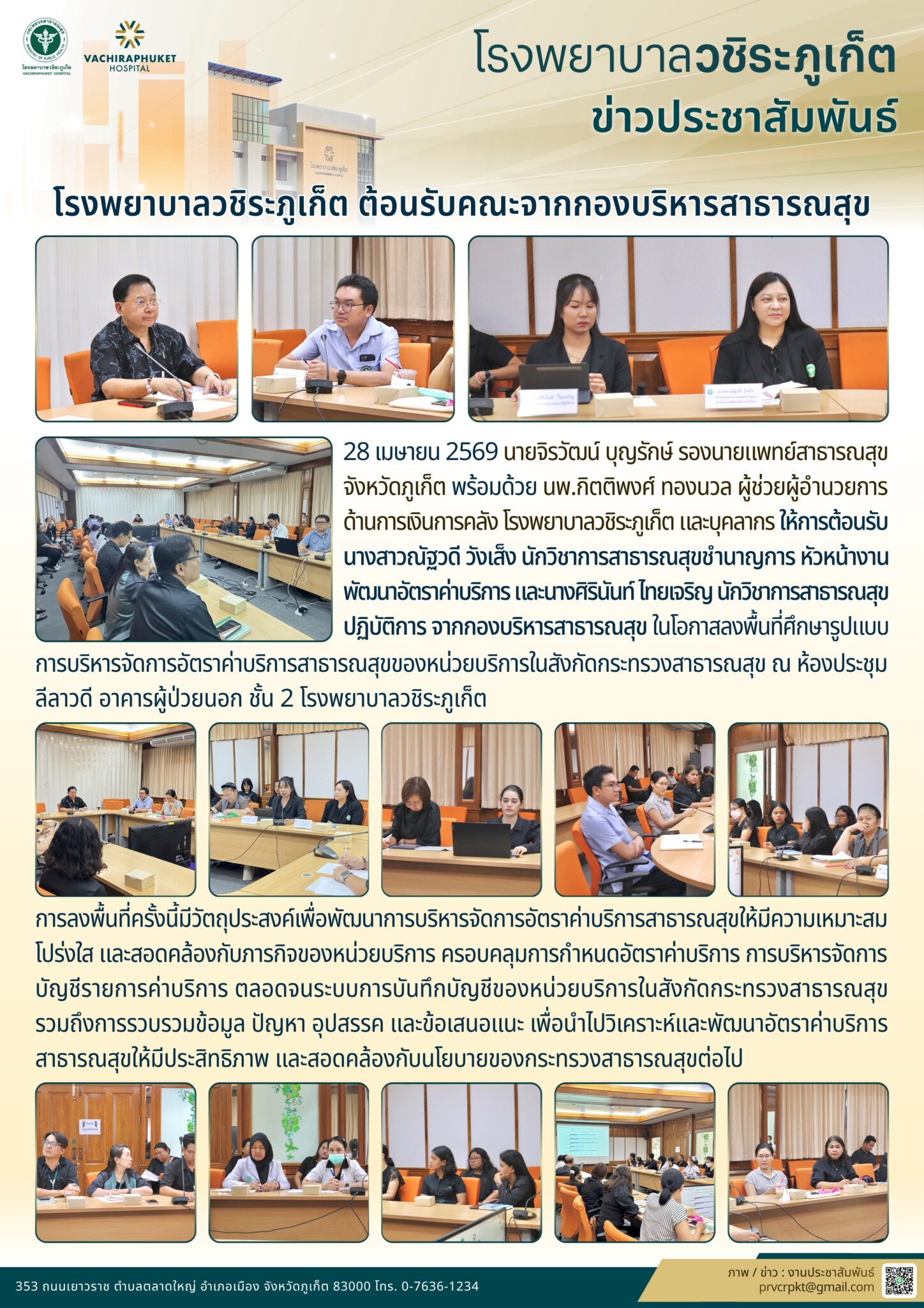 โรงพยาบาลวชิระภูเก็ต ต้อนรับคณะจากกองบริหารสาธารณสุข อภิญญา เอ่งฉ้วน2026-04-28T17:47:25+07:0028 เมษายน 2026|Categories: ข่าวประชาสัมพันธ์| View Larger Image ปรับปรุงเมื่อ 2 ชั่วโมง ago เข้าชม: 19 ลิงค์สำหรับนำไปเผยแพร่: https://www.vachiraphuket.go.th/go/6ymg แบ่งปันเรื่องนี้ FacebookXTelegramEmail