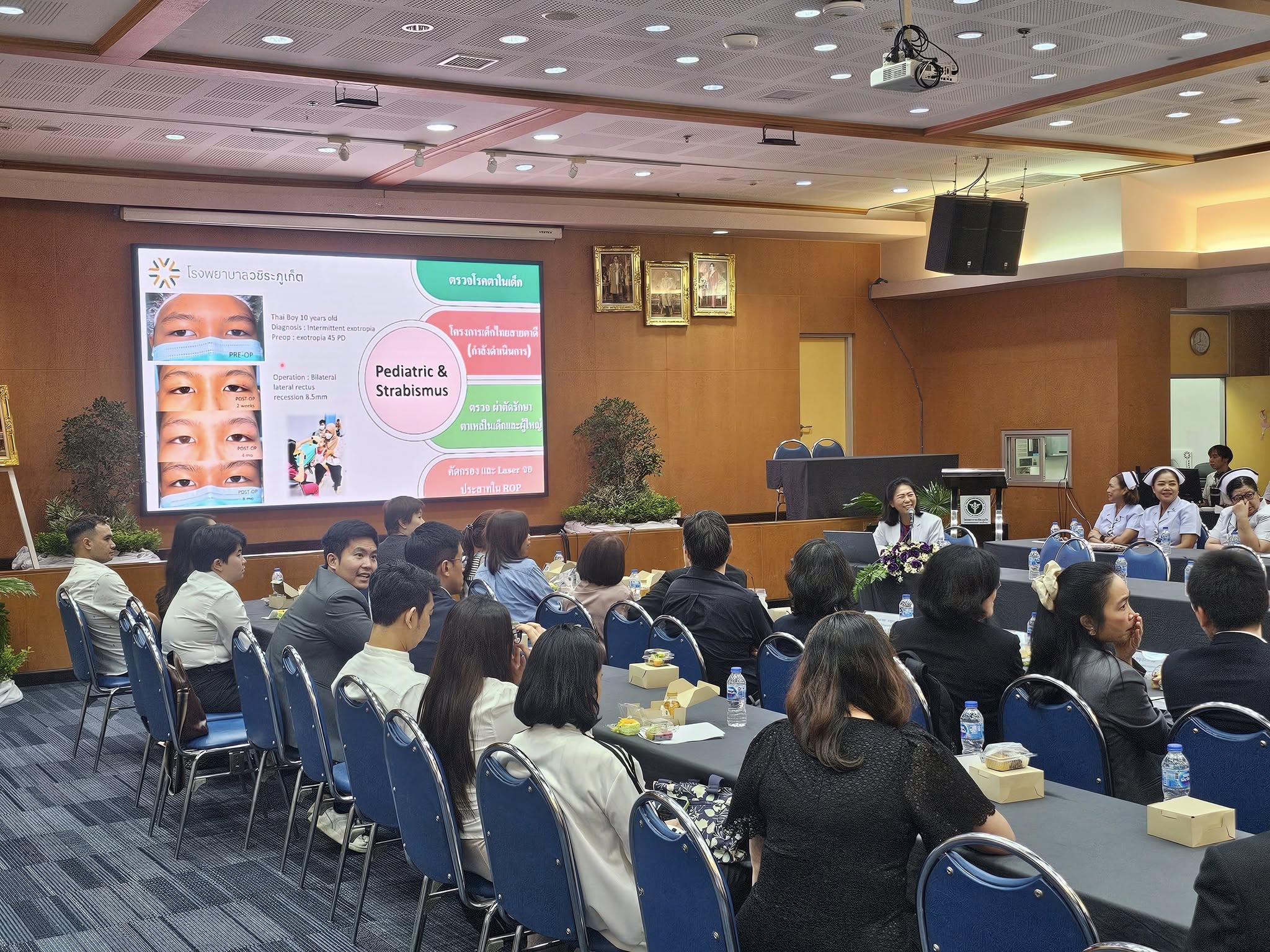 3 ตุลาคม 2568 นพ.วีระศักดิ์ หล่อทองคำ ผู้อำนวยการโรงพยาบาลวชิระภูเก็ต พร้อมด้วย พญ.ศุภลักษณ์ ละอองเพชร รองผู้อำนวยการฝ่ายการแพทย์ คนที่ 1 และบุคลากรโรงพยาบาล ให้การต้อนรับ นพ.ปานเนตร ปางพุฒิพงศ์ ประธานราชวิทยาลัยจักษุแพทย์แห่งประเทศไทย และคณะ ในโอกาสเข้าศึกษาดูงานแผนกจักษุ ณ ห้องประชุมราชพฤกษ์ ชั้น 6 อาคารบ้านคุณพุ่ม โรงพยาบาลวชิระภูเก็ต