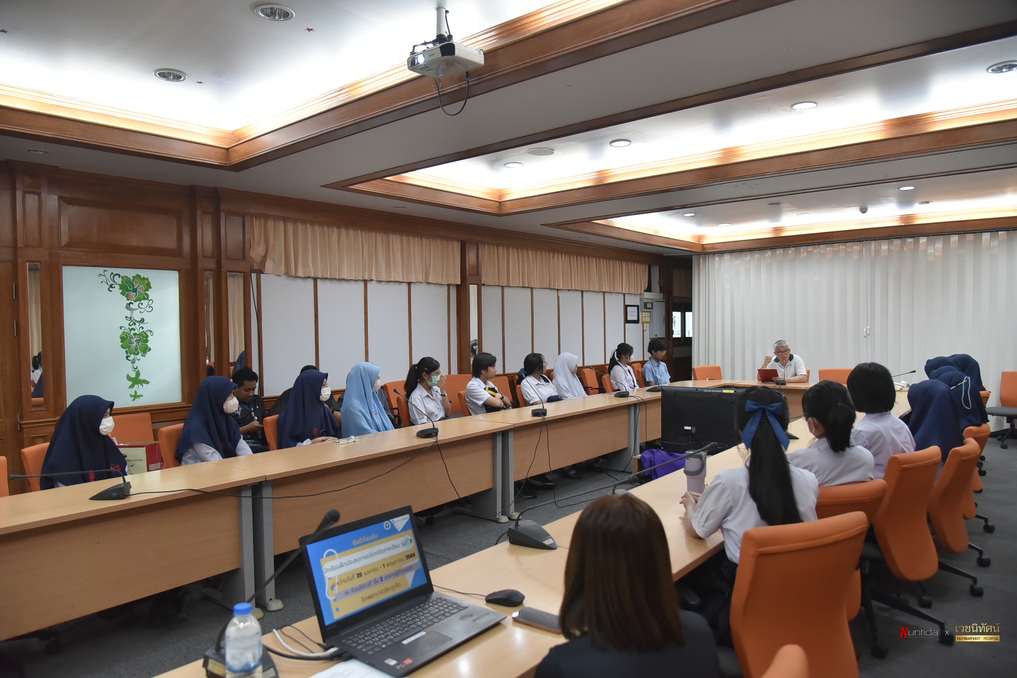 โอกาสนี้ ได้แนะนำแนวทางการเตรียมตัวศึกษาต่อในระดับมหาวิทยาลัย พร้อมเปิดโอกาสให้นักเรียนเข้าศึกษาดูงานในหน่วยงานต่าง ๆ ภายในโรงพยาบาล เพื่อเรียนรู้การปฏิบัติงานจริง และเป็นแนวทางในการศึกษาต่อในอนาคต โดยกิจกรรมจัดขึ้น ณ ห้องประชุมลีลาวดี อาคารผู้ป่วยนอก ชั้น 2 โรงพยาบาลวชิระภูเก็ต