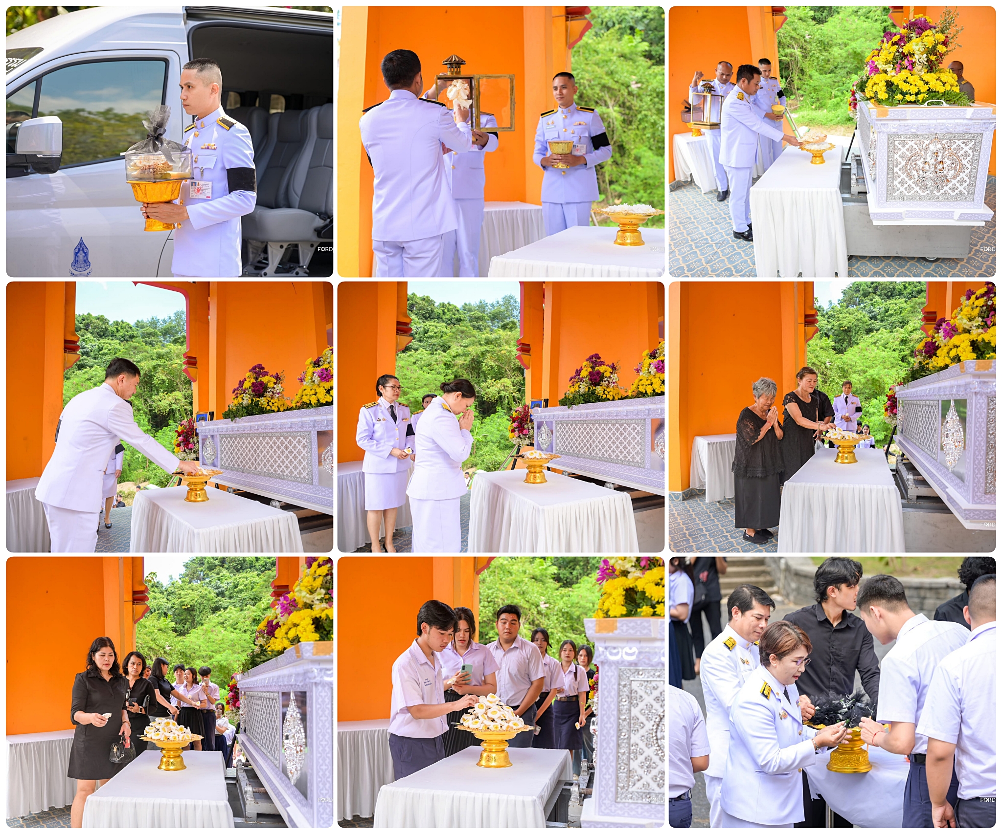 พิธีครั้งนี้ได้รับเกียรติจากนายไพโรจน์ ศรีละมุล นายอำเภอเมืองภูเก็ต เป็นประธานในพิธี และมีครอบครัวผู้วายชนม์ คณะอาจารย์ และเพื่อนๆ ร่วมแสดงความอาลัยและสำนึกในคุณความดีของผู้วายชนม์ด้วยความเคารพยิ่ง ณ เมรุวัดโฆษิตวิหาร อำเภอเมือง จังหวัดภูเก็ต