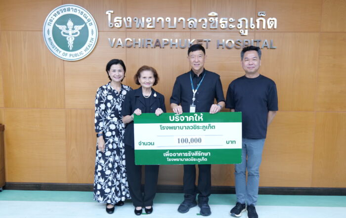 อภิญญา เอ่งฉ้วน2025-10-31T13:30:34+07:00บริษัท สวีทรูม จำกัด (สำนักงานใหญ่) บริจาคเงินจำนวน 100,000 บาท เพื่อสมทบทุนสร้าง “อาคารรังสีรักษา” ศูนย์มะเร็งครบวงจร โรงพยาบาลวชิระภูเก็ตอภิญญา เอ่งฉ้วน2025-10-31T13:30:34+07:0031 ตุลาคม 2025|Categories: ข่าวบริจาค|Tags: รังสีรักษา|
