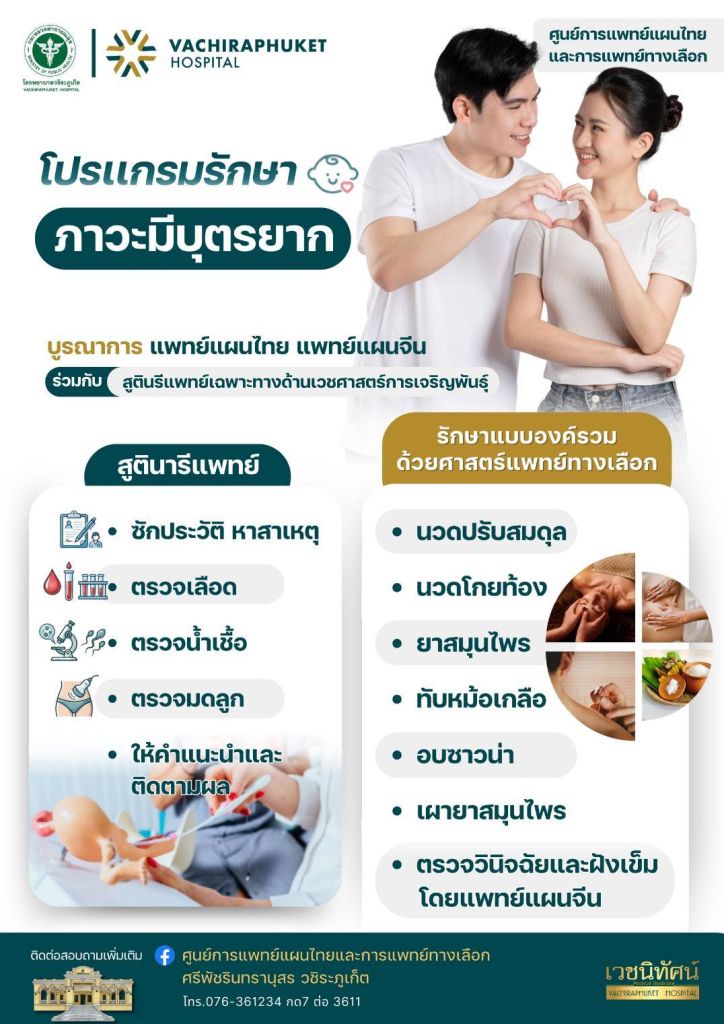 ศูนย์การแพทย์แผนไทยและการแพทย์ทางเลือก ศรีพัชรินทรานุสร วชิระภูเก็ตโทร 076-361234 กด7 ต่อ 3611