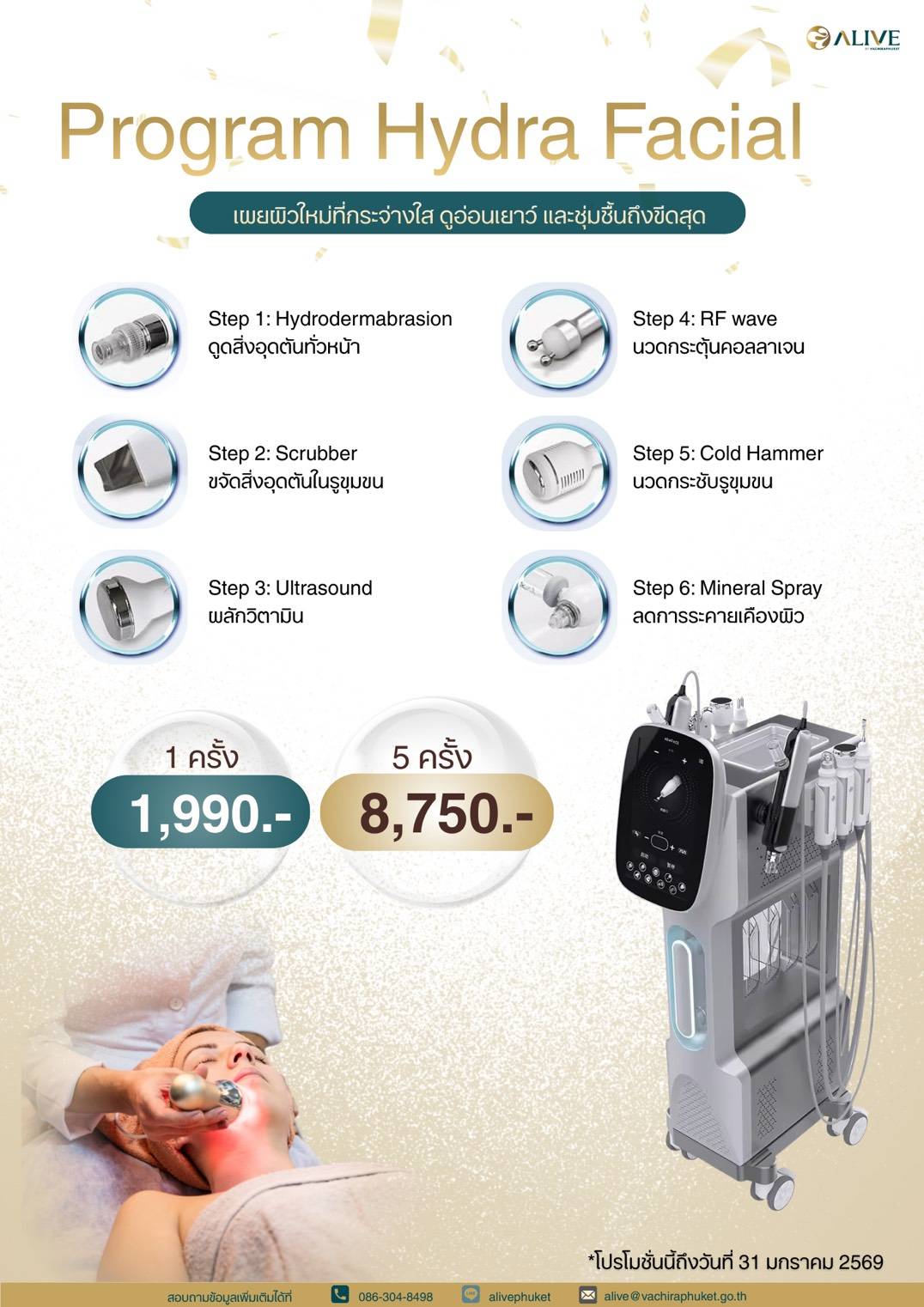 Program Hydra Facial – เผยผิวใหม่ที่กระจ่างใส ดูอ่อนเยาว์และชุ่มชื้นถึงขีดสุด Gallery Program Hydra Facial – เผยผิวใหม่ที่กระจ่างใส ดูอ่อนเยาว์และชุ่มชื้นถึงขีดสุด แพ็กเกจและโปรโมชั่น Program Hydra Facial – เผยผิวใหม่ที่กระจ่างใส ดูอ่อนเยาว์และชุ่มชื้นถึงขีดสุด Vachira Phuket2026-01-05T09:29:29+07:005 มกราคม 2026|Categories: แพ็กเกจและโปรโมชั่น|Tags: alive|