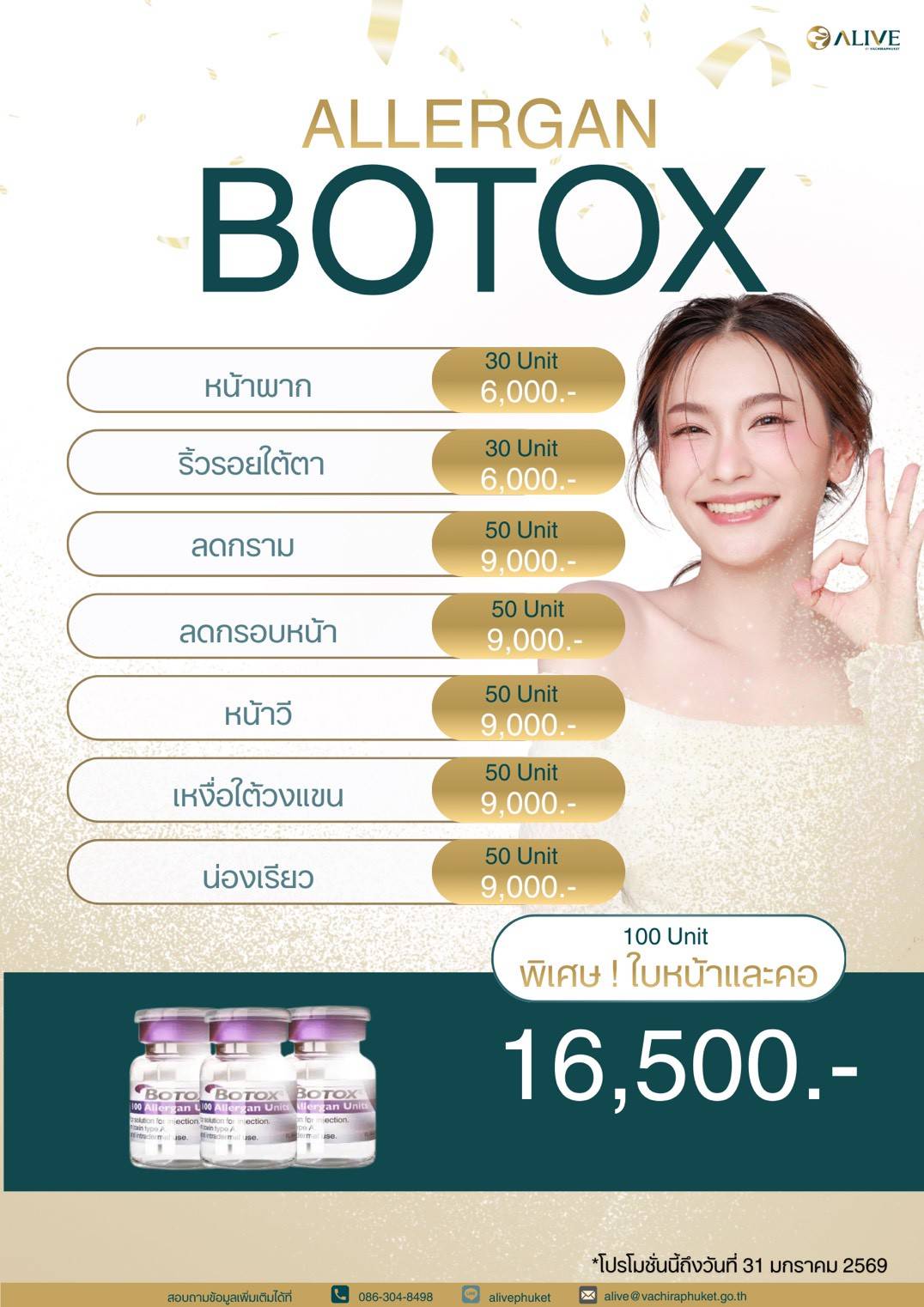 ALLERGAN BOTOX Gallery ALLERGAN BOTOX แพ็กเกจและโปรโมชั่น ALLERGAN BOTOX Vachira Phuket2026-01-07T13:20:29+07:005 มกราคม 2026|Categories: แพ็กเกจและโปรโมชั่น|Tags: alive|