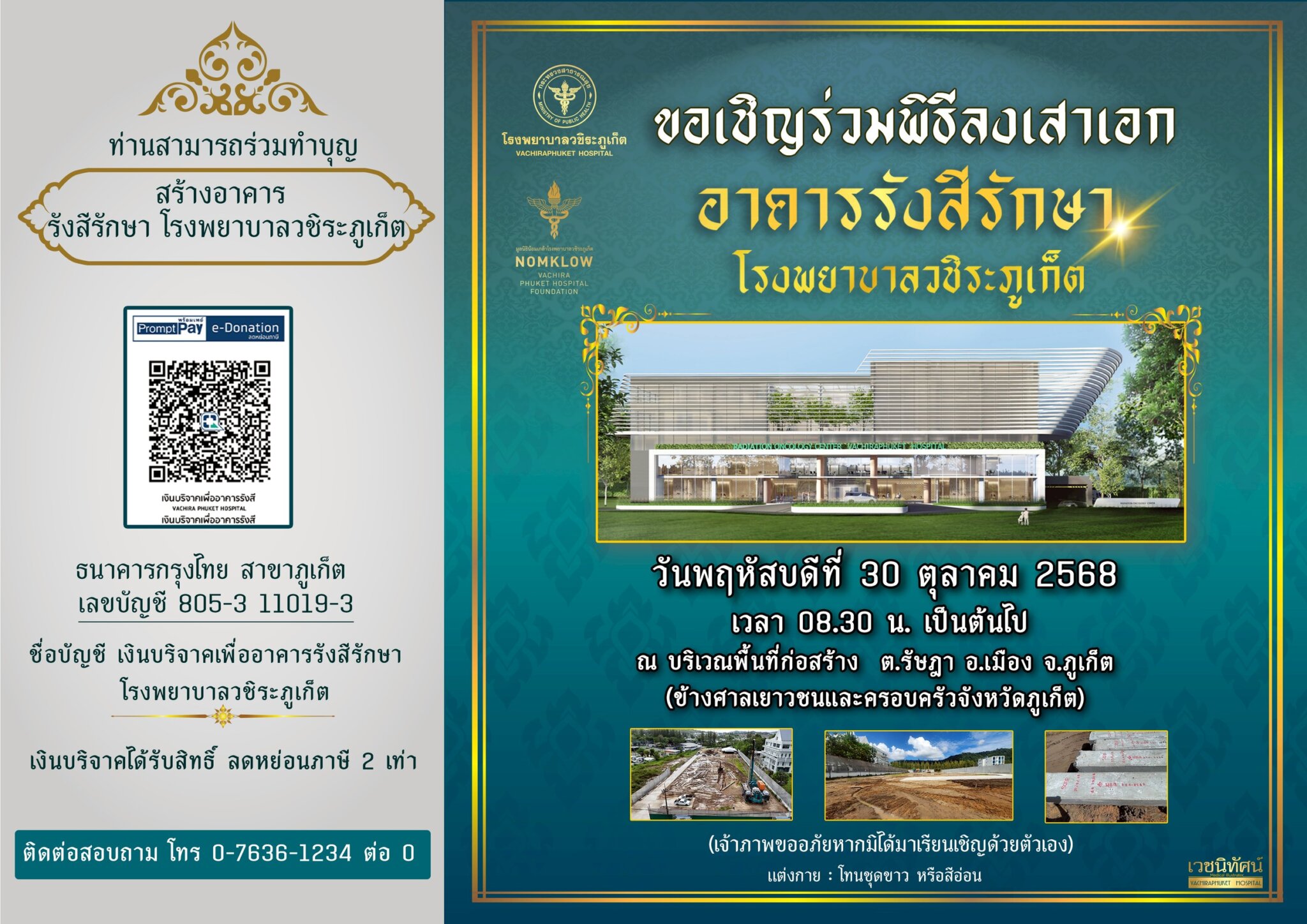 14 ตุลาคม 2568 คุณเมตตา รัตนประทุมมาลย์ บริจาคเงินจำนวน 100,000 บาท เนื่องในโอกาสวันคล้ายวันเกิด เพื่อสมทบทุนสร้างศูนย์มะเร็งแห่งแรกของจังหวัดภูเก็ต “ศูนย์รังสีรักษาครบวงจร โรงพยาบาลวชิระภูเก็ต “ Gallery 14 ตุลาคม 2568 คุณเมตตา รัตนประทุมมาลย์ บริจาคเงินจำนวน 100,000 บาท เนื่องในโอกาสวันคล้ายวันเกิด เพื่อสมทบทุนสร้างศูนย์มะเร็งแห่งแรกของจังหวัดภูเก็ต “ศูนย์รังสีรักษาครบวงจร โรงพยาบาลวชิระภูเก็ต “ ข่าวบริจาค 14 ตุลาคม 2568 คุณเมตตา รัตนประทุมมาลย์ บริจาคเงินจำนวน 100,000 บาท เนื่องในโอกาสวันคล้ายวันเกิด เพื่อสมทบทุนสร้างศูนย์มะเร็งแห่งแรกของจังหวัดภูเก็ต “ศูนย์รังสีรักษาครบวงจร โรงพยาบาลวชิระภูเก็ต “ รุ้งนภา นันทะรักษ์2025-10-14T11:51:37+07:0014 ตุลาคม 2025|Categories: ข่าวบริจาค|Tags: ข่าวรังสีรักษา, รังสีรักษา|